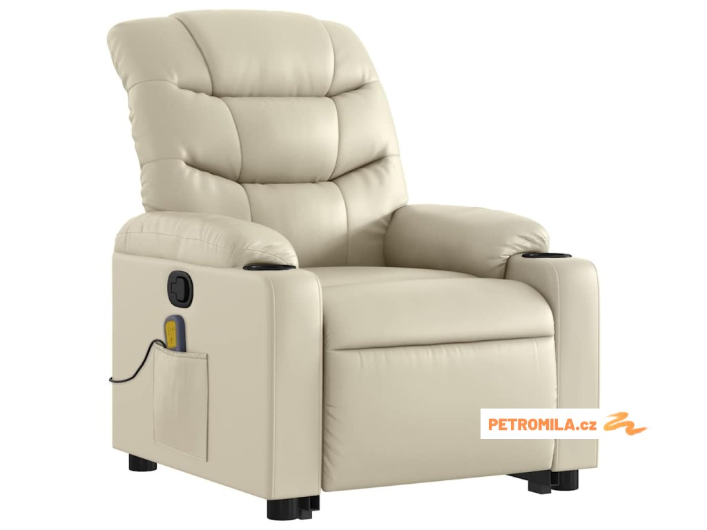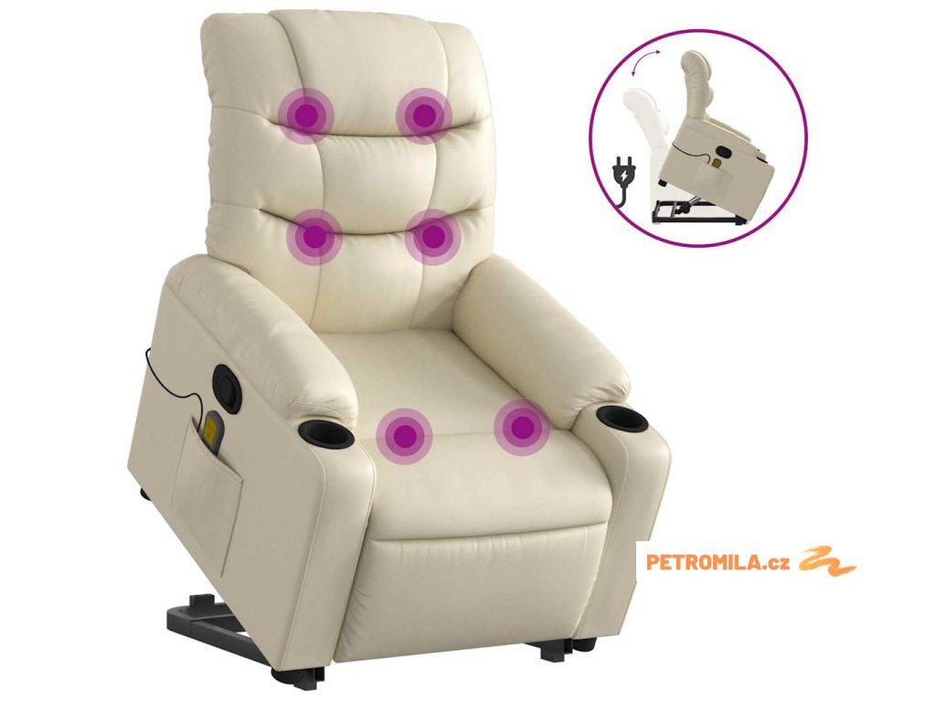Zvedací masážní polohovací křeslo krémové umělá kůže