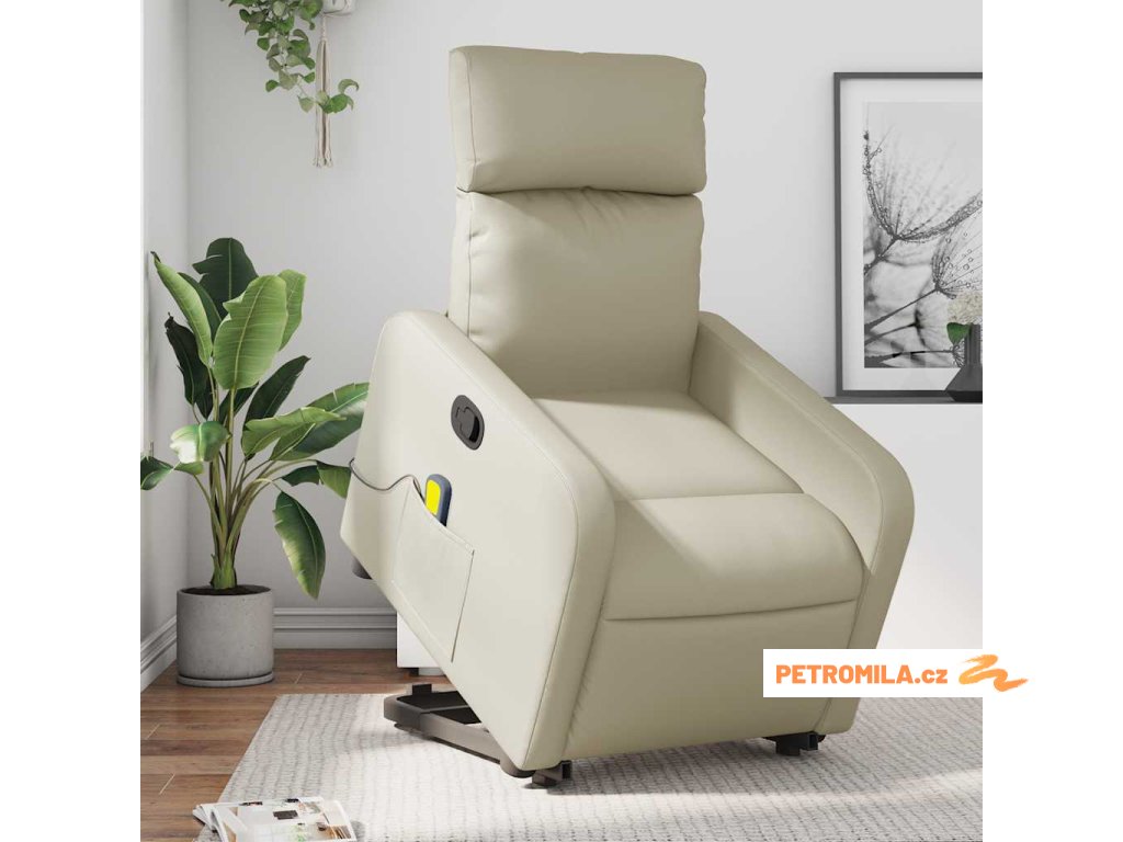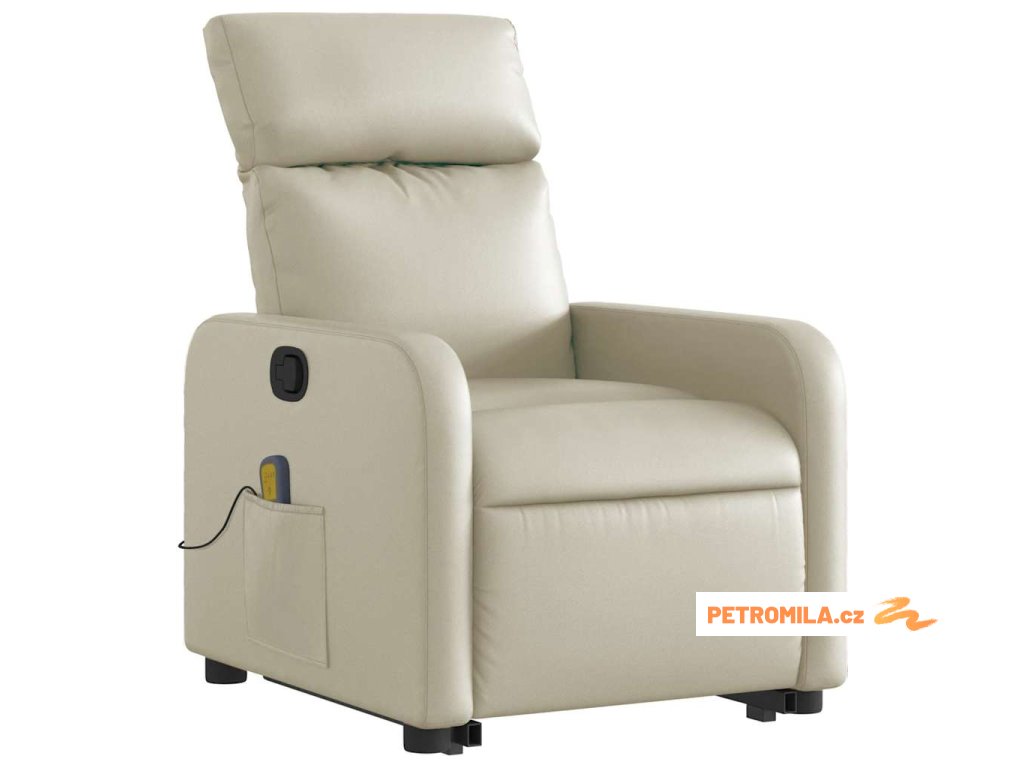 Zvedací masážní polohovací křeslo krémové umělá kůže