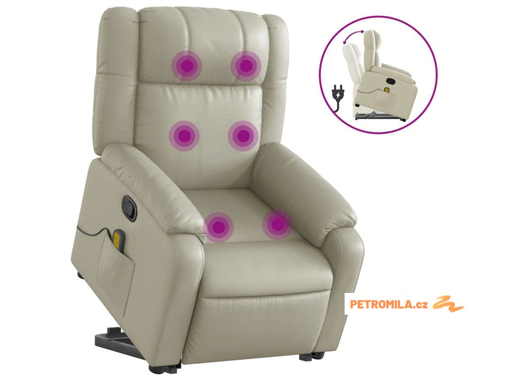 Zvedací masážní polohovací křeslo krémové umělá kůže
