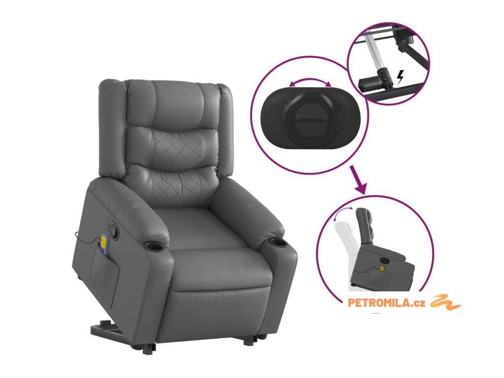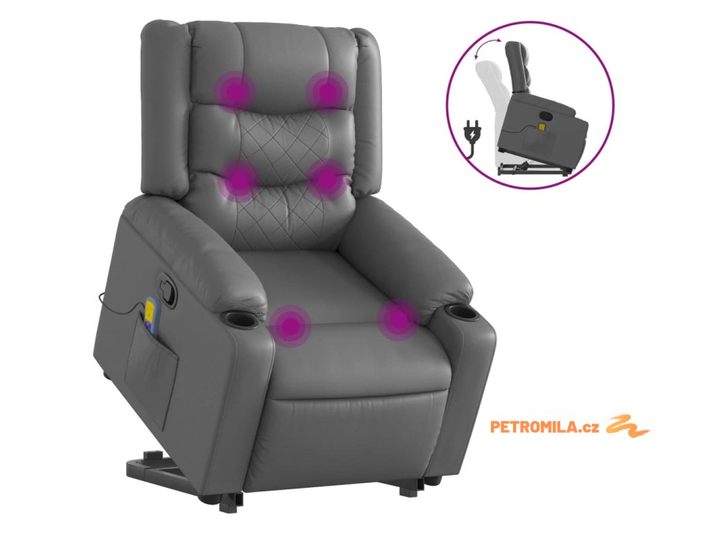 Zvedací masážní polohovací křeslo šedé umělá kůže