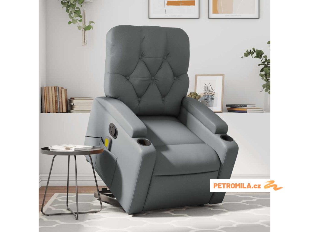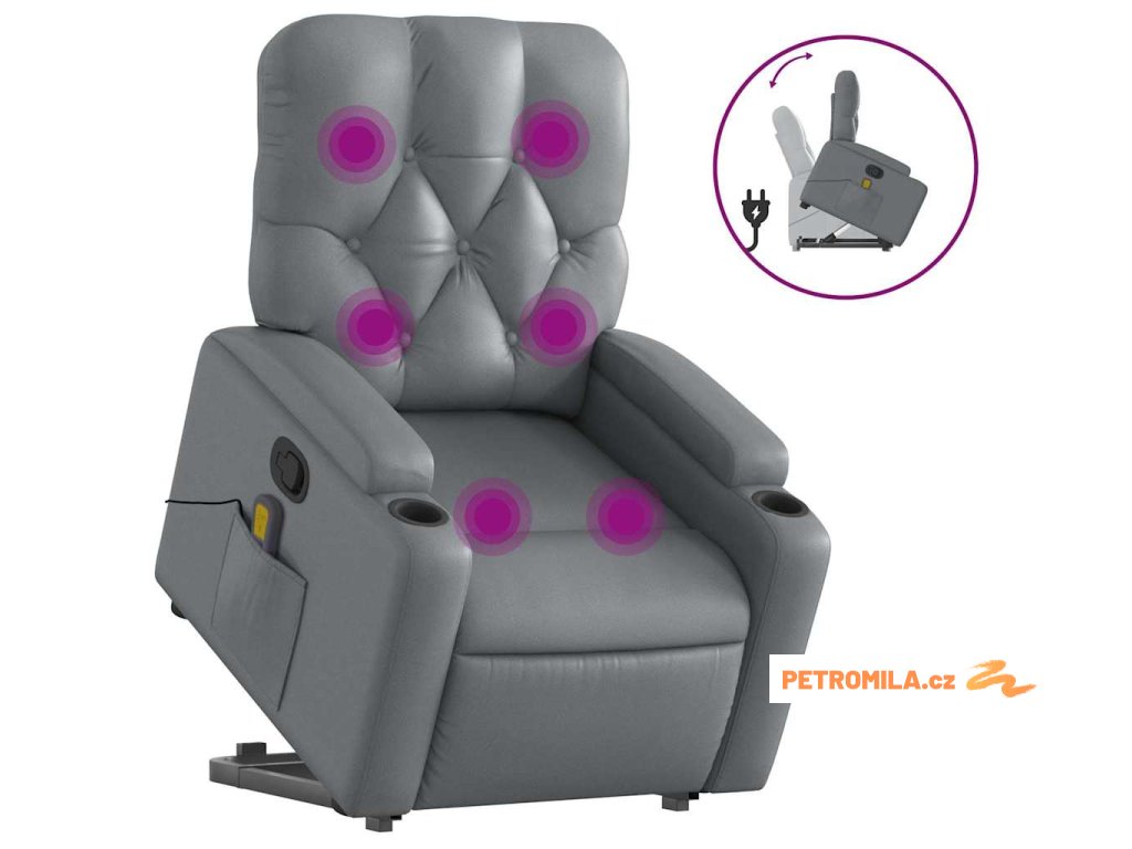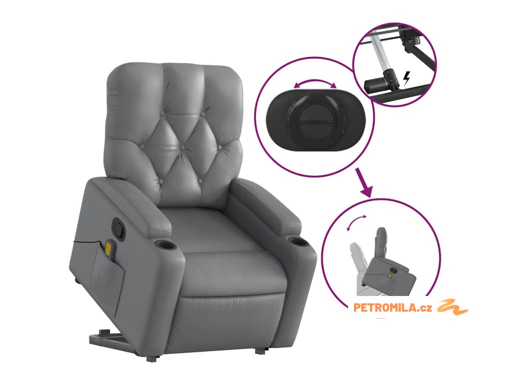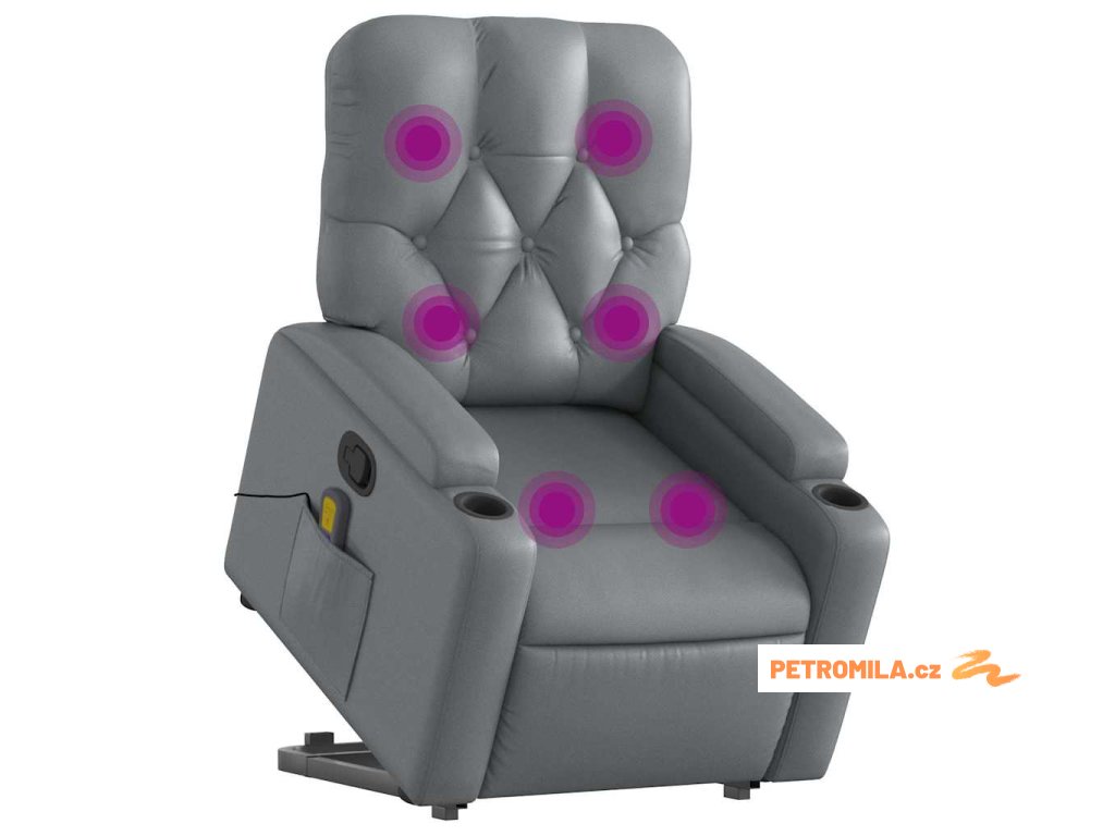 Zvedací masážní polohovací křeslo šedé umělá kůže