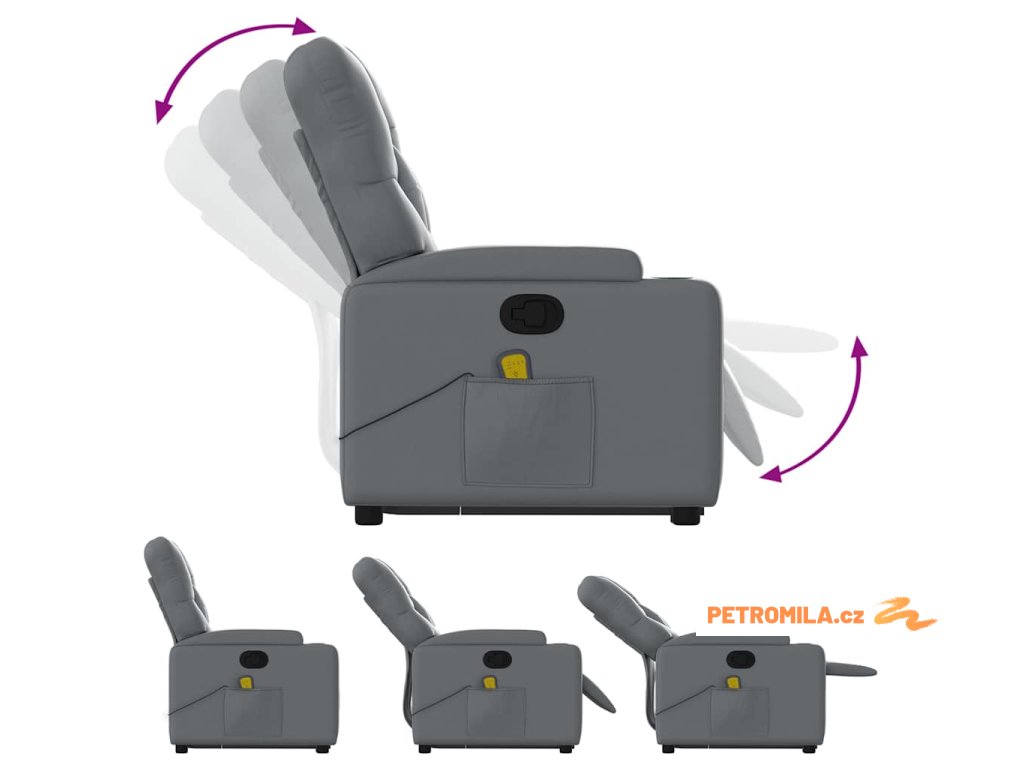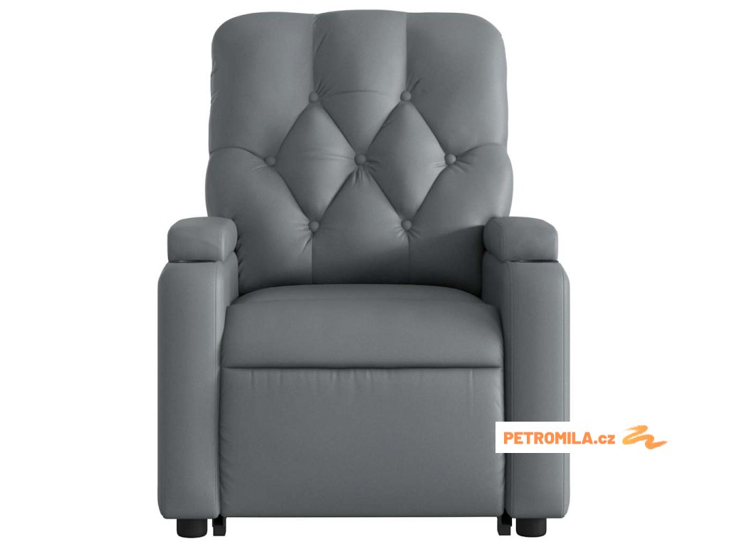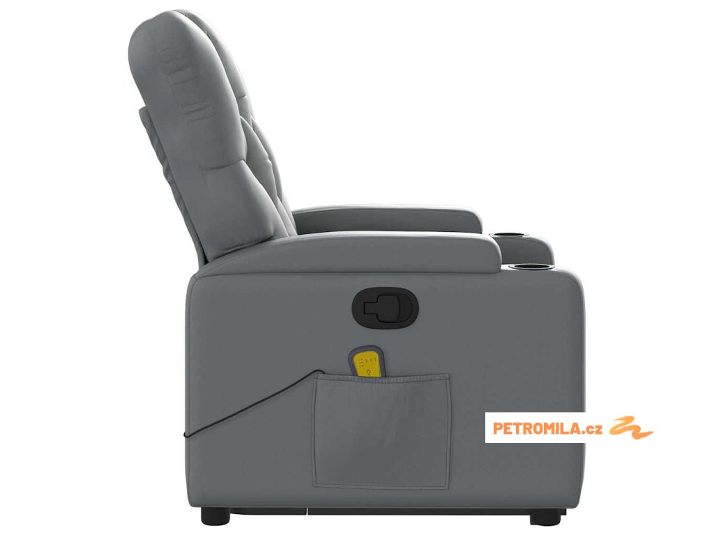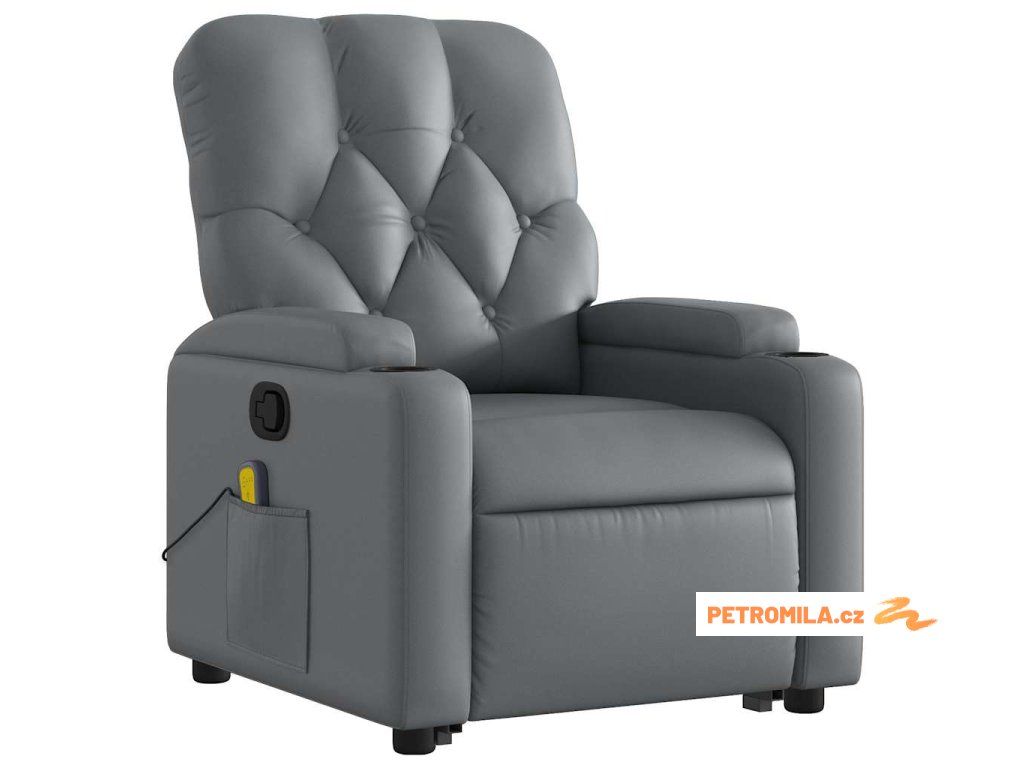 Zvedací masážní polohovací křeslo šedé umělá kůže