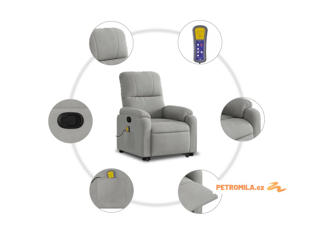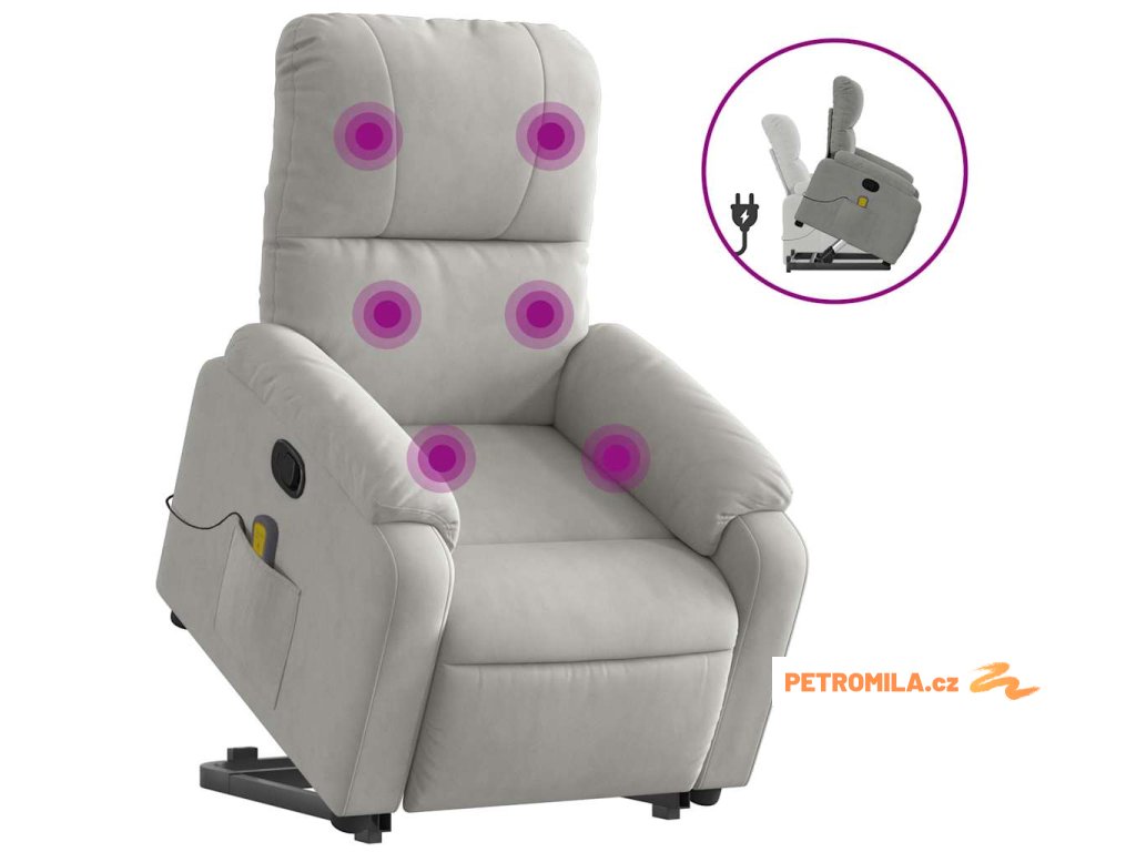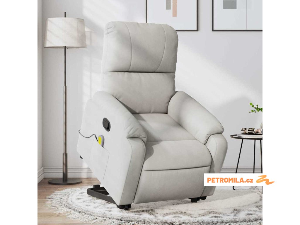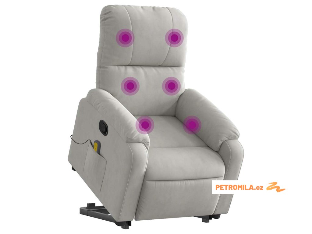 Zvedací masážní polohovací křeslo světle šedé mikrovlákno