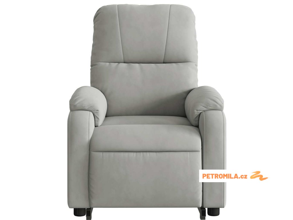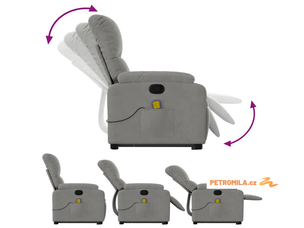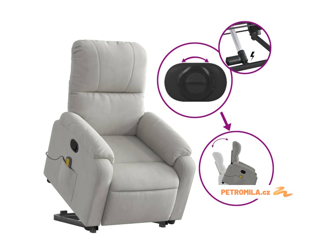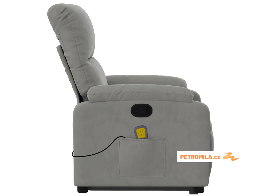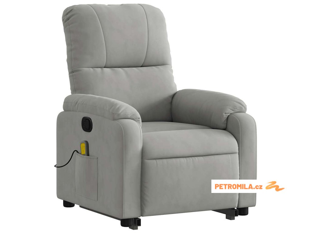Zvedací masážní polohovací křeslo světle šedé mikrovlákno