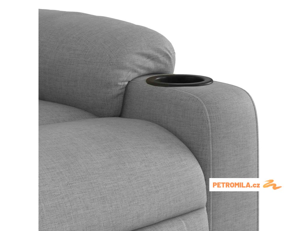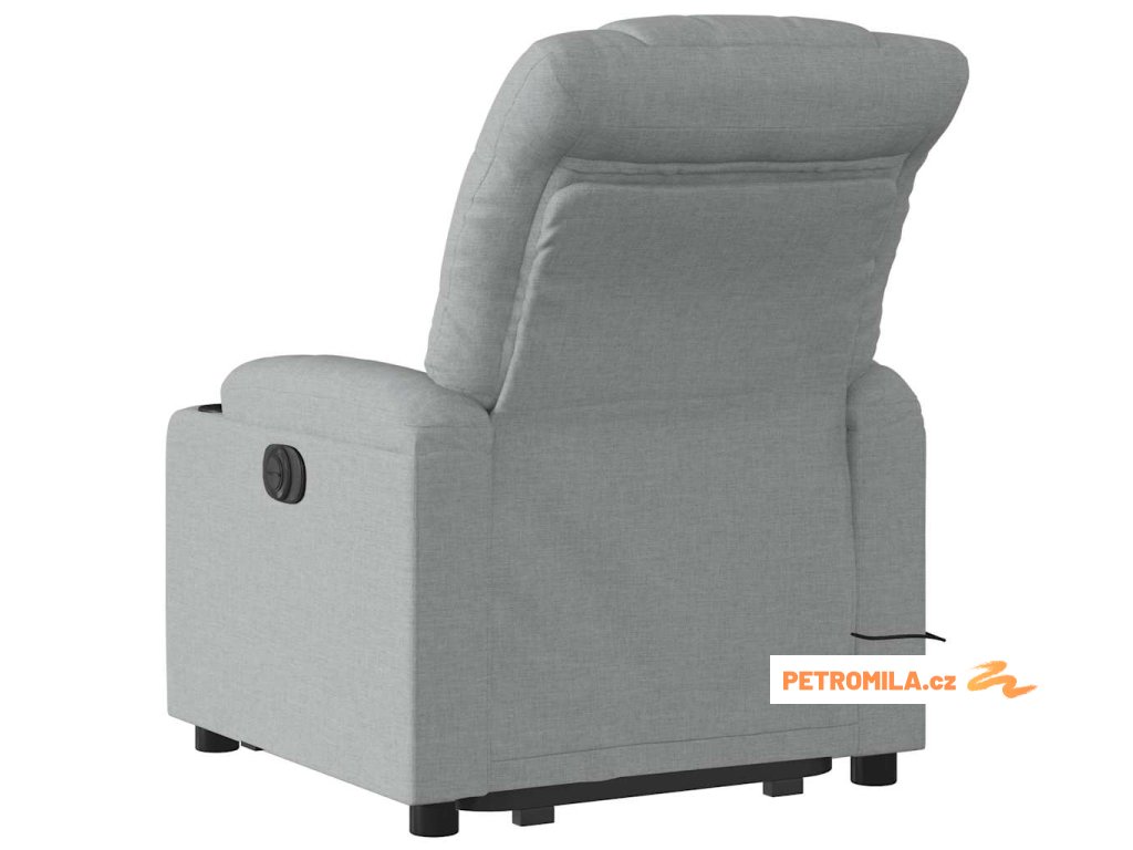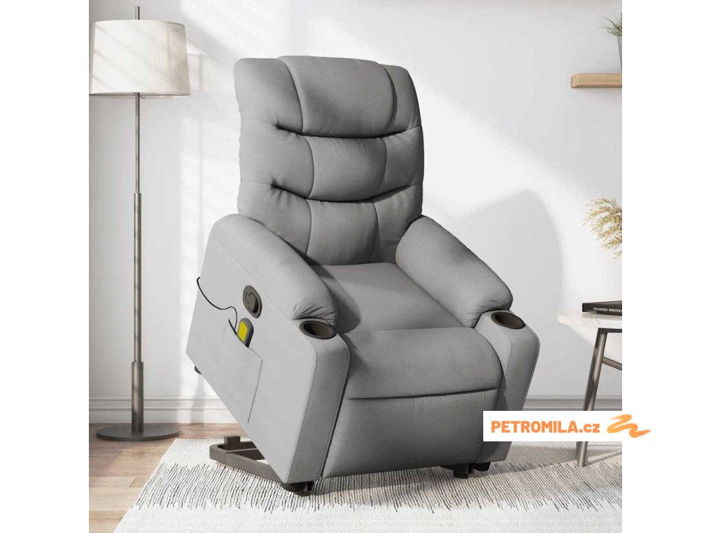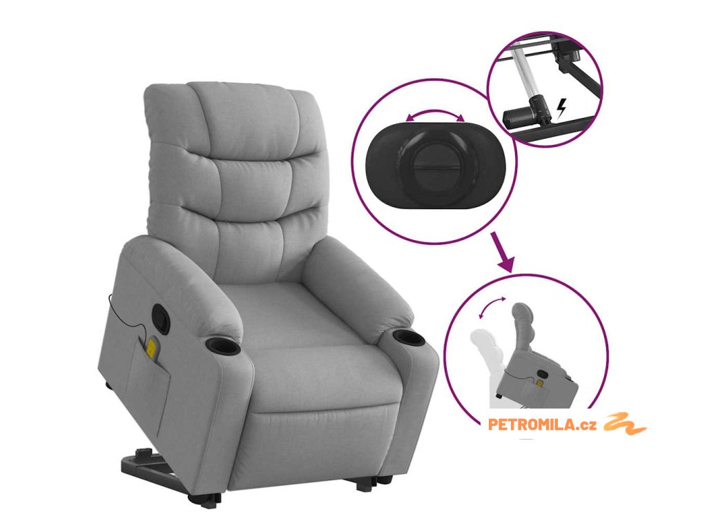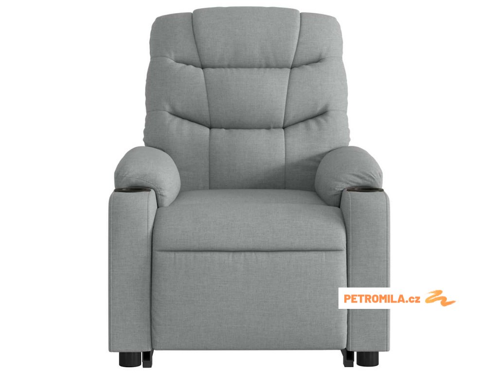 Elektrické zvedací polohovací křeslo světle šedé samet