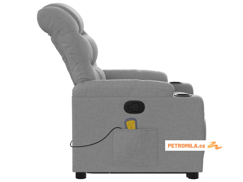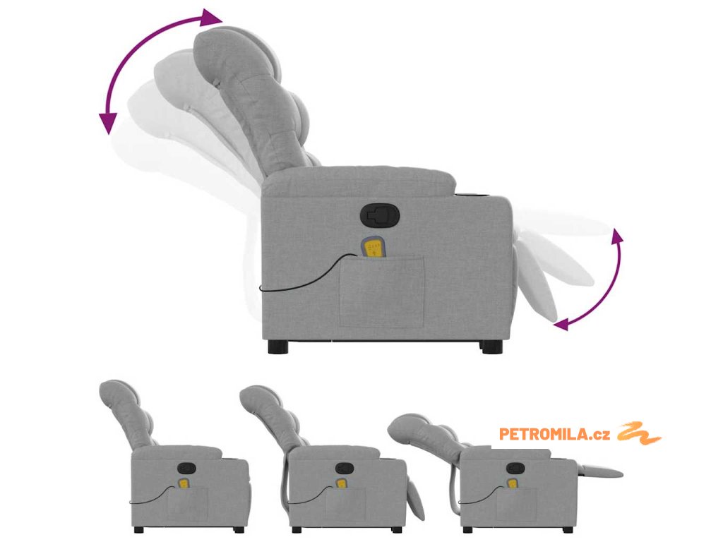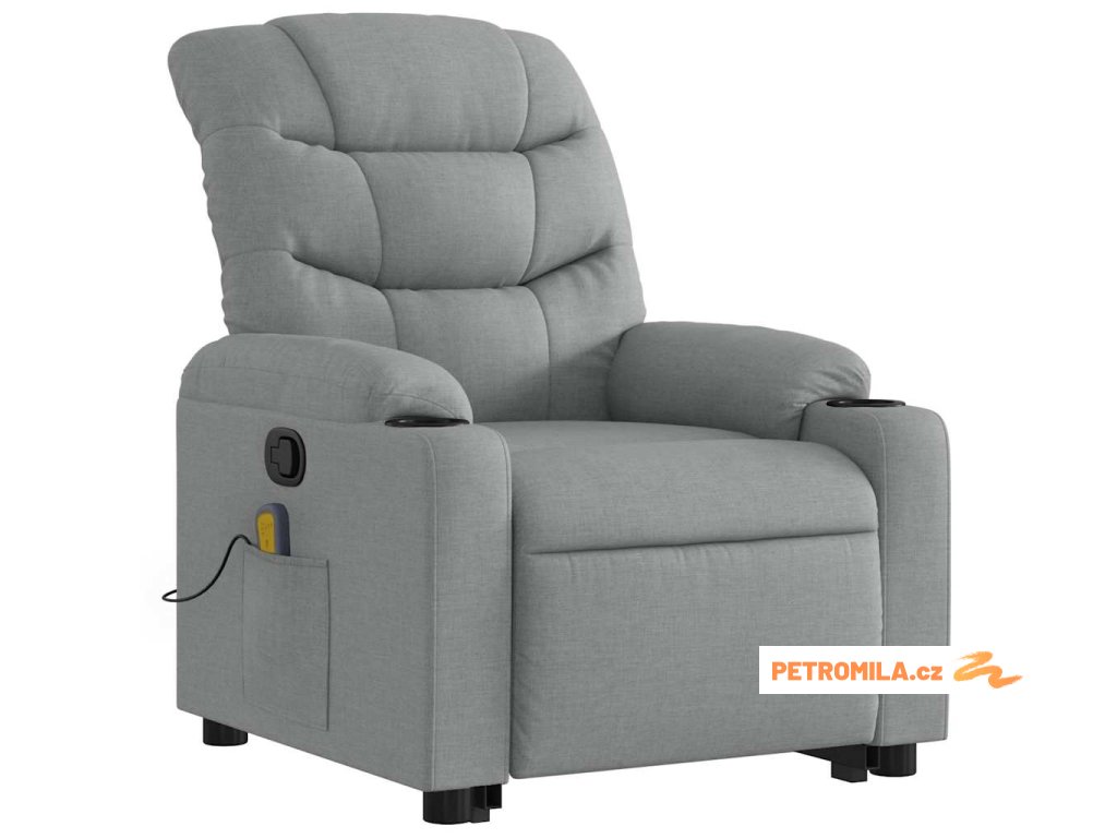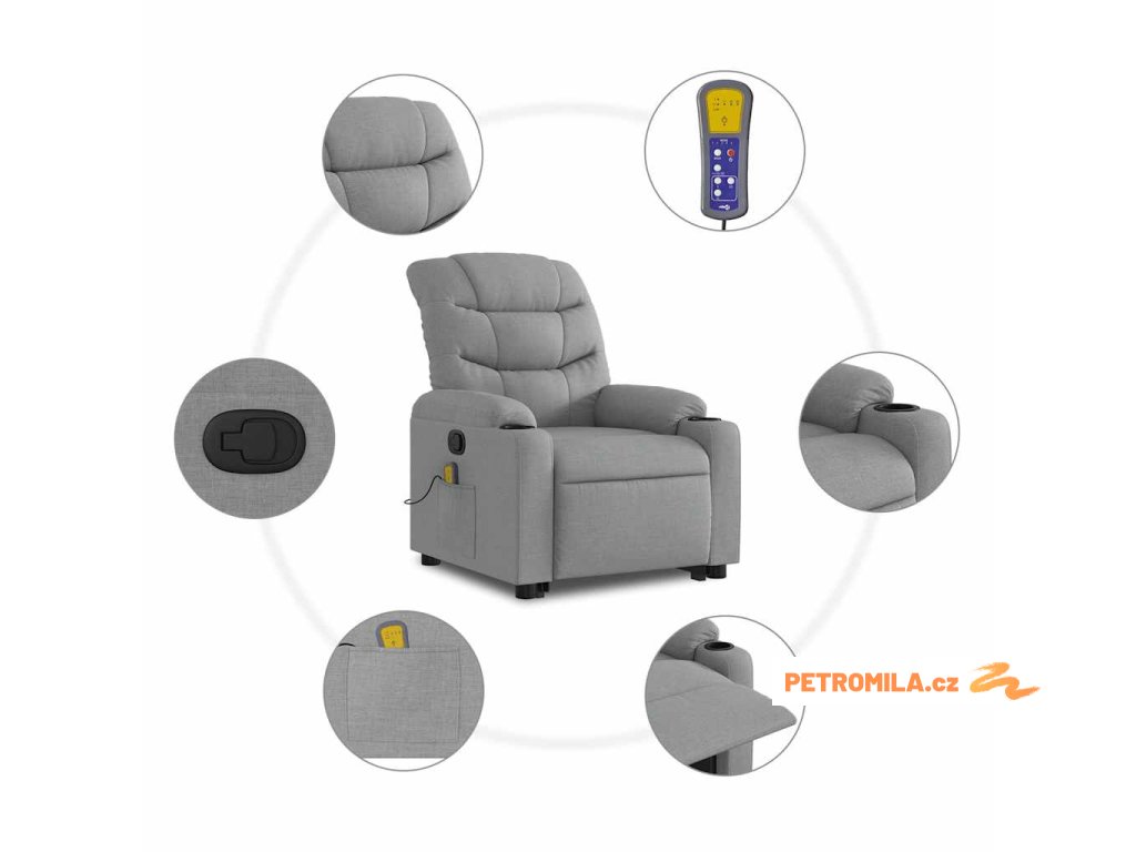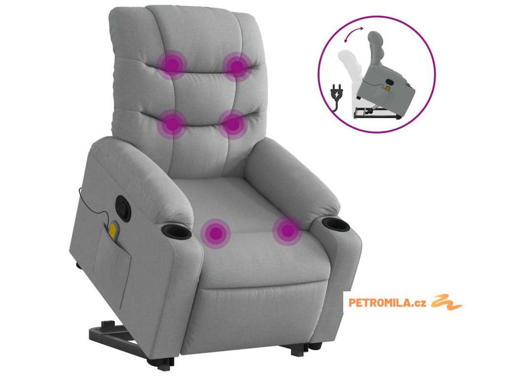 Elektrické zvedací polohovací křeslo světle šedé samet