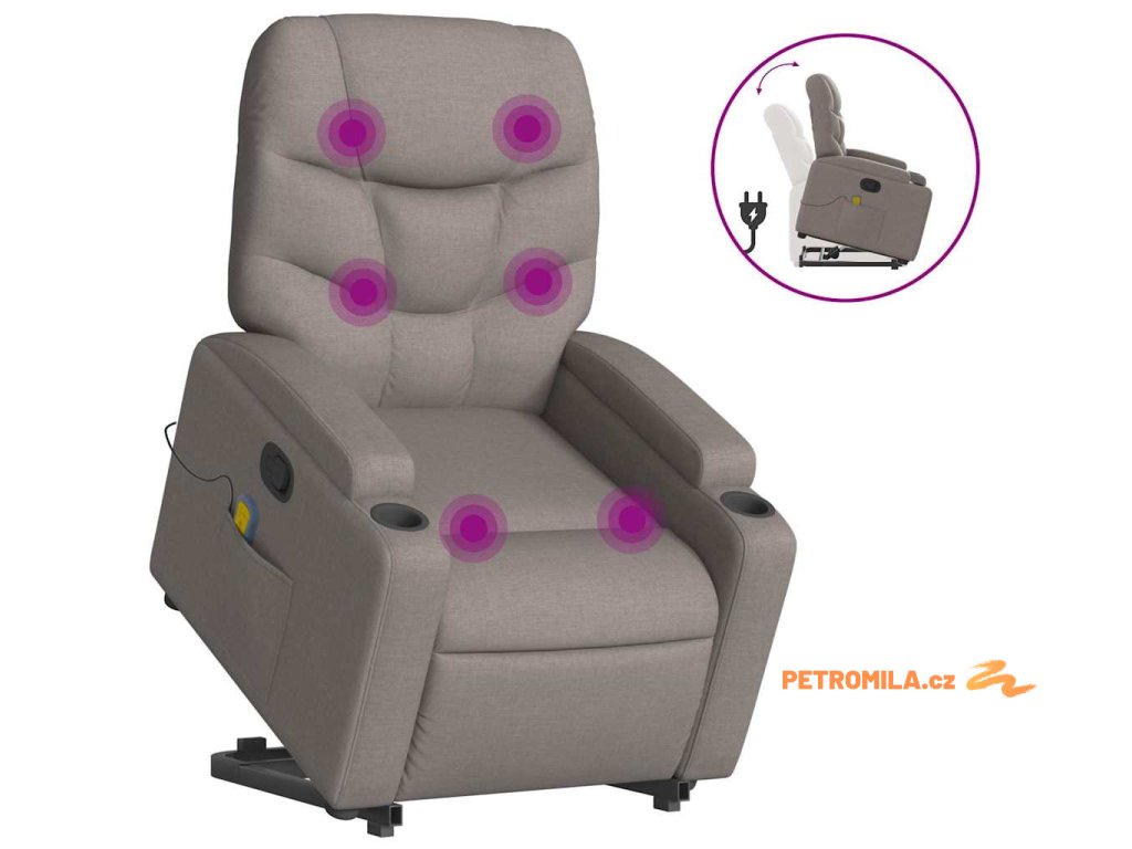 Zvedací masážní polohovací křeslo tmavě hnědé textil