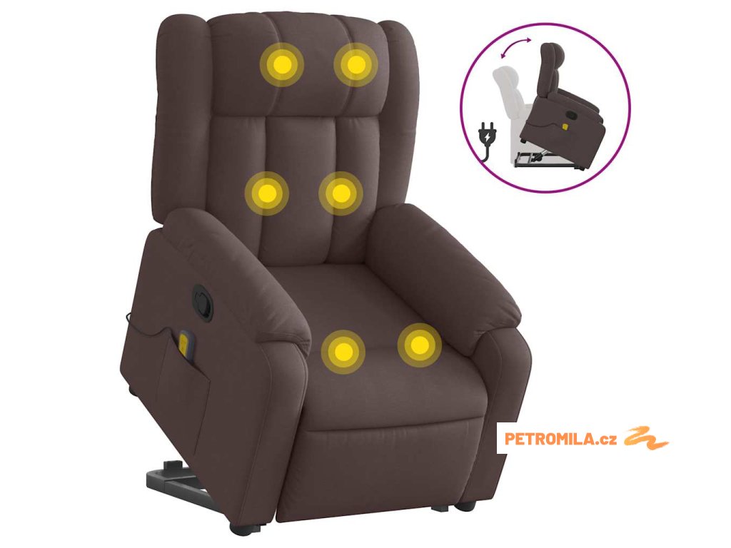 Zvedací masážní polohovací křeslo tmavě hnědé textil