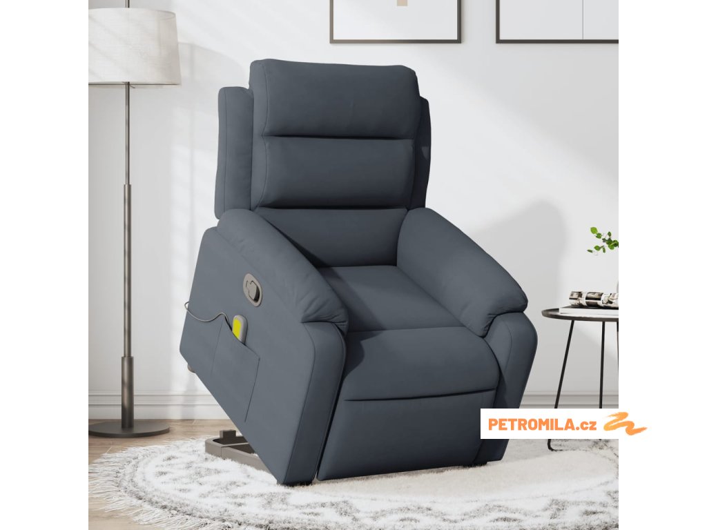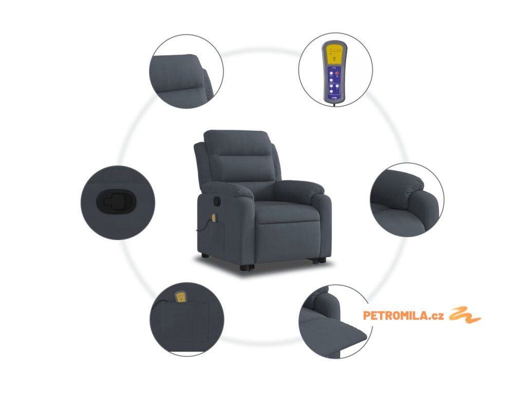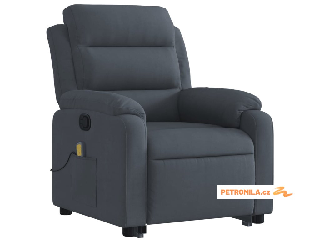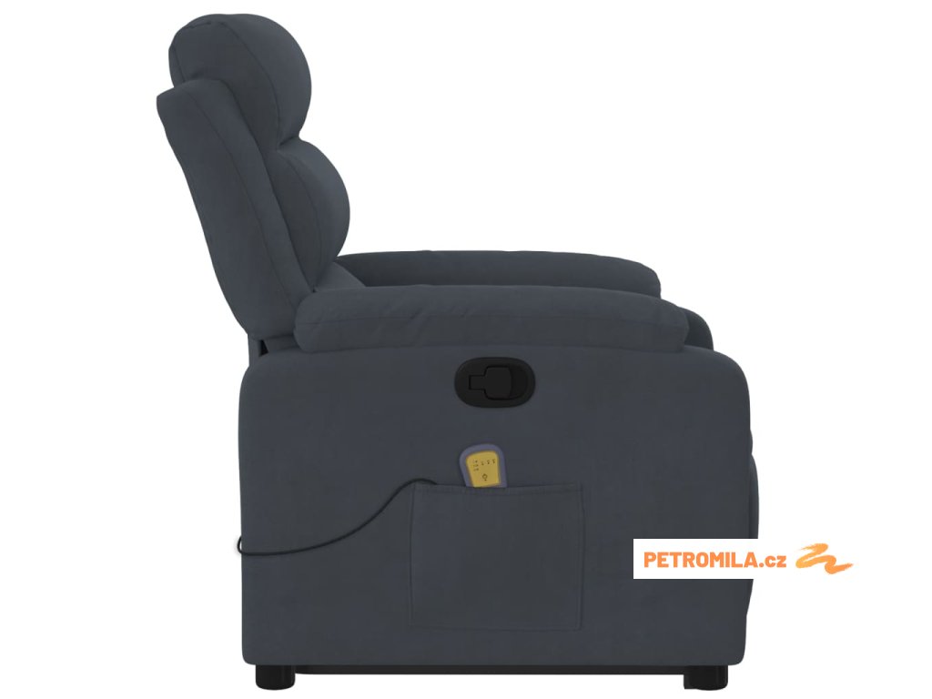 Zvedací masážní polohovací křeslo tmavě šedé samet