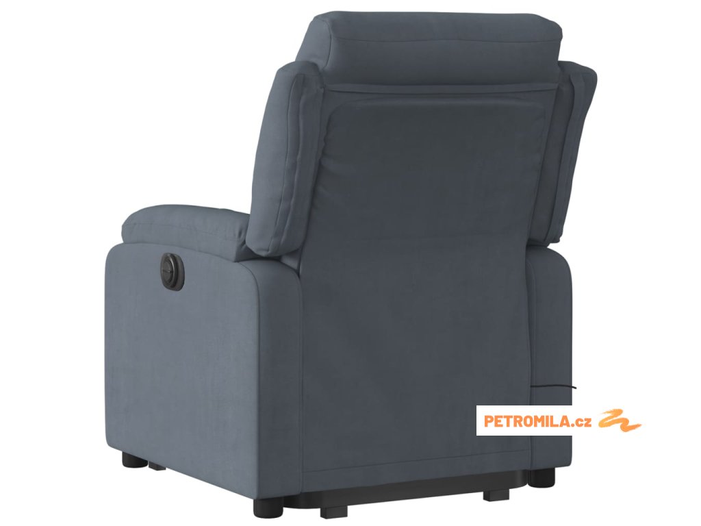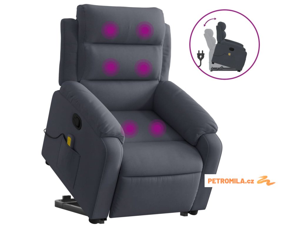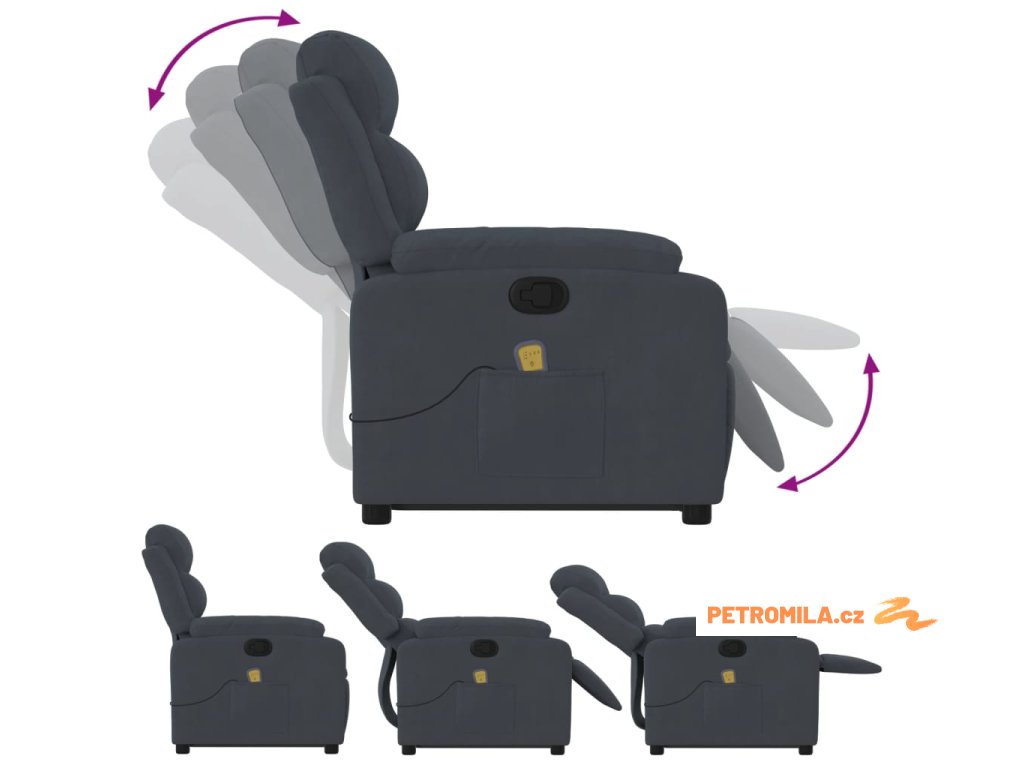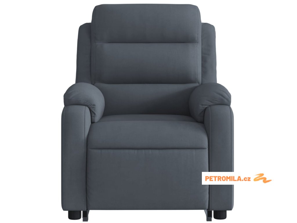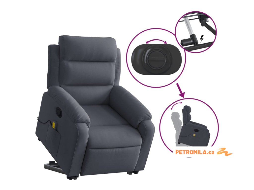 Zvedací masážní polohovací křeslo tmavě šedé samet