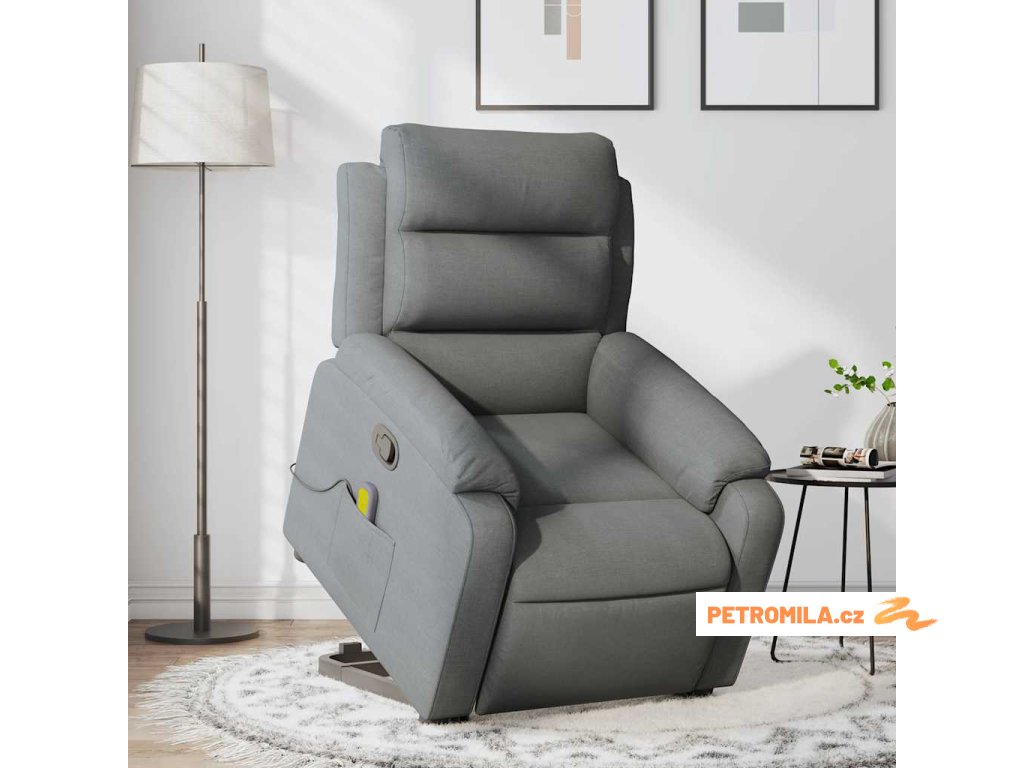 Zvedací masážní polohovací křeslo tmavě šedé textil