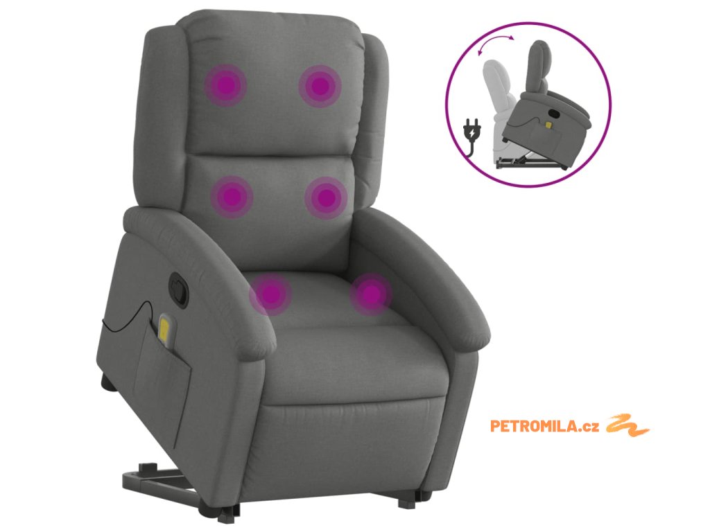 Zvedací masážní polohovací křeslo tmavě šedé textil