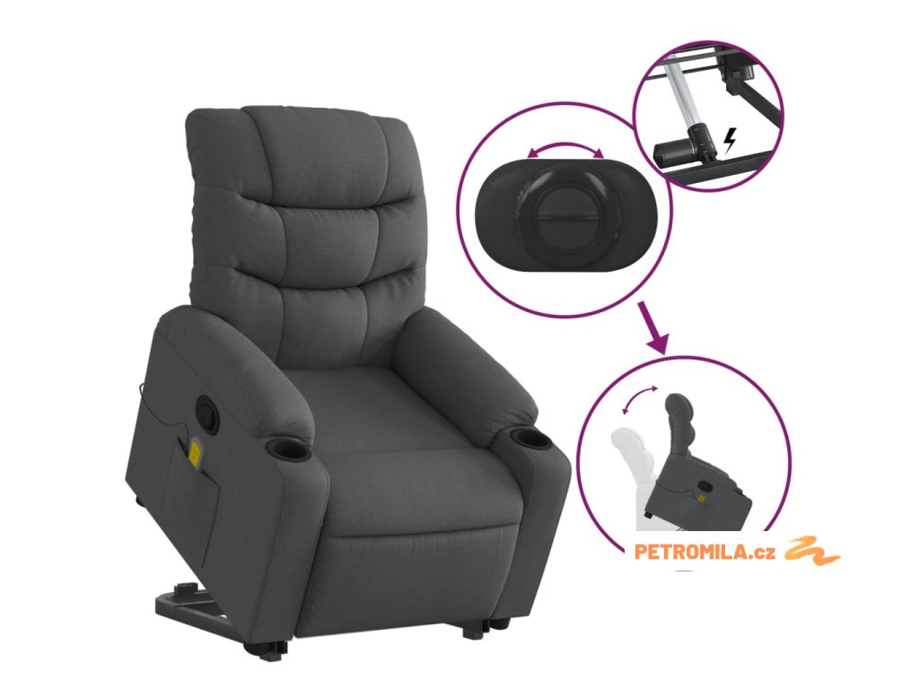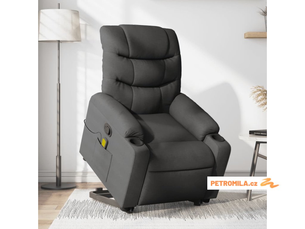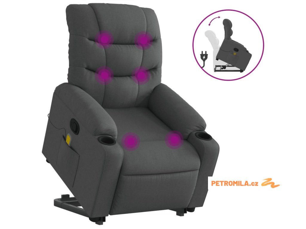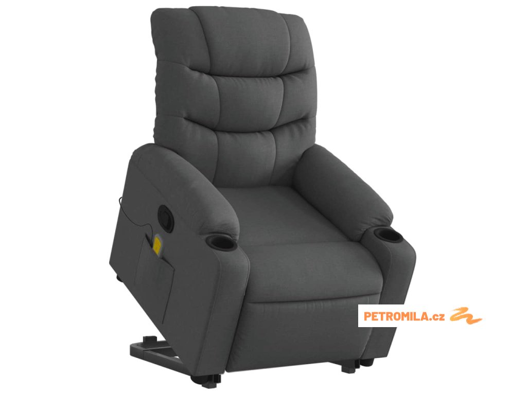 Zvedací masážní polohovací křeslo tmavě šedé textil