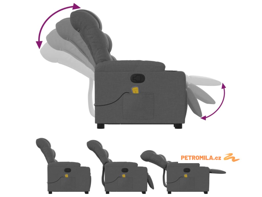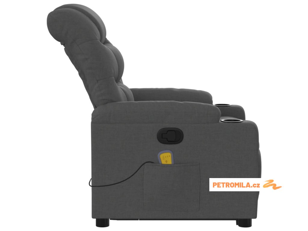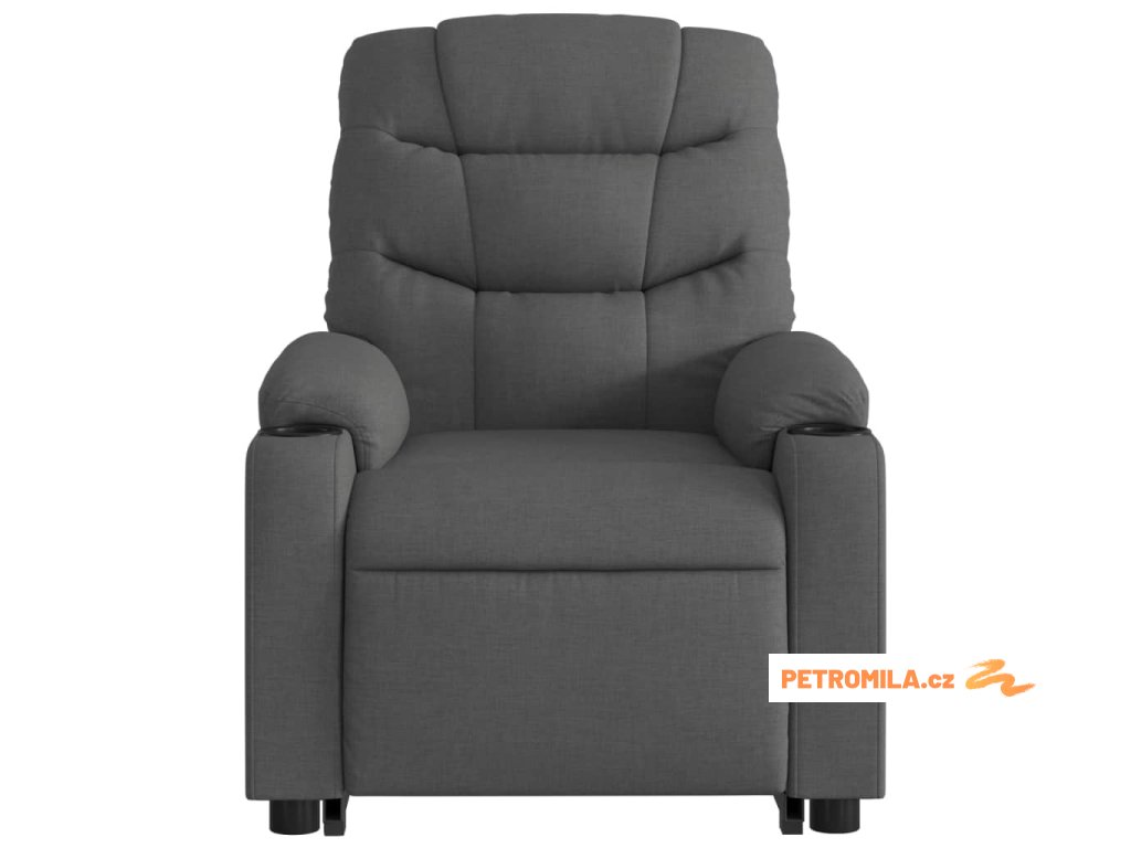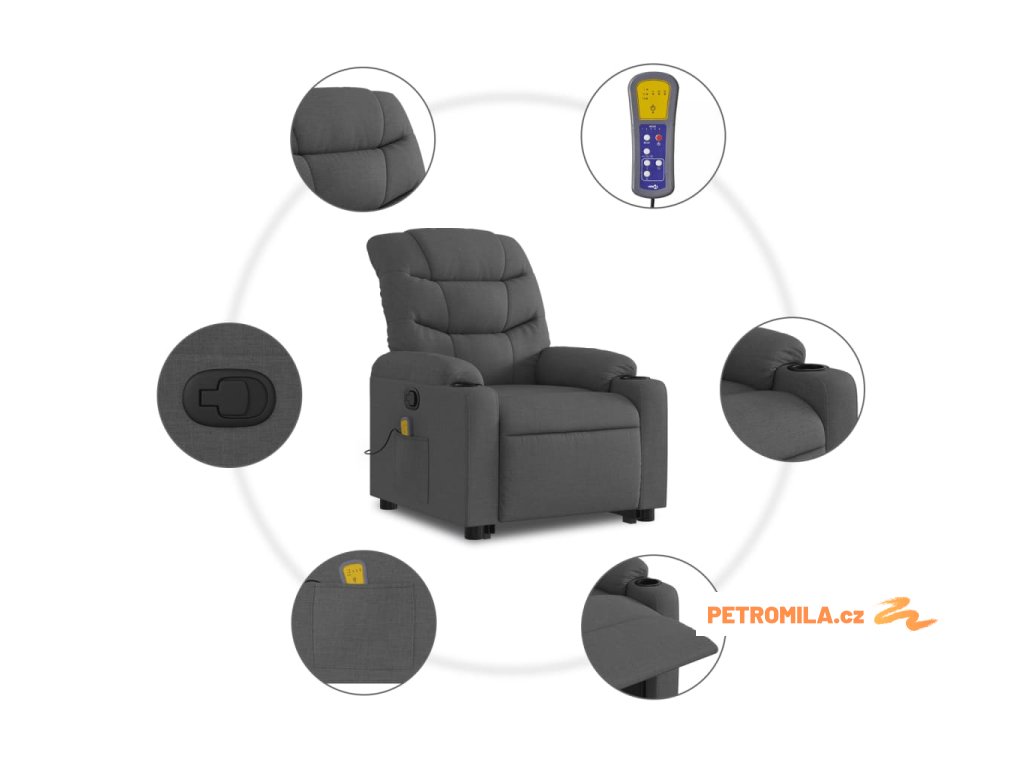 Zvedací masážní polohovací křeslo tmavě šedé textil