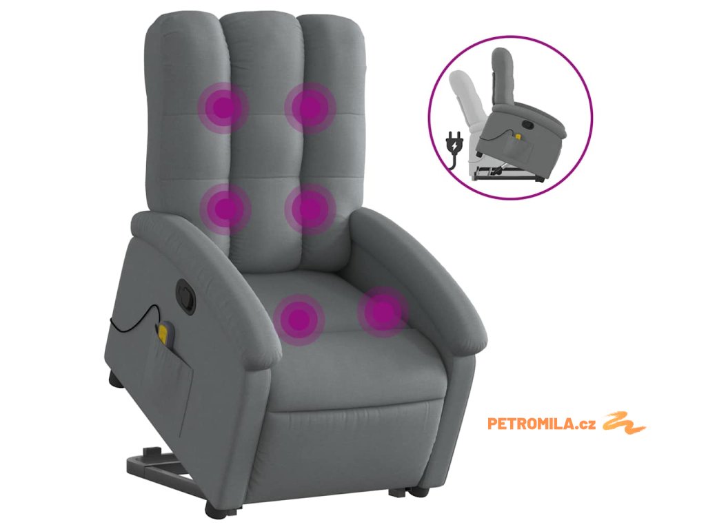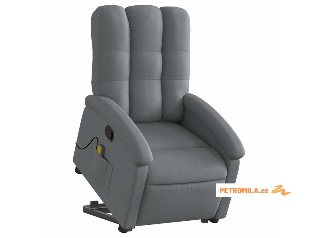 Zvedací masážní polohovací křeslo tmavě šedé textil