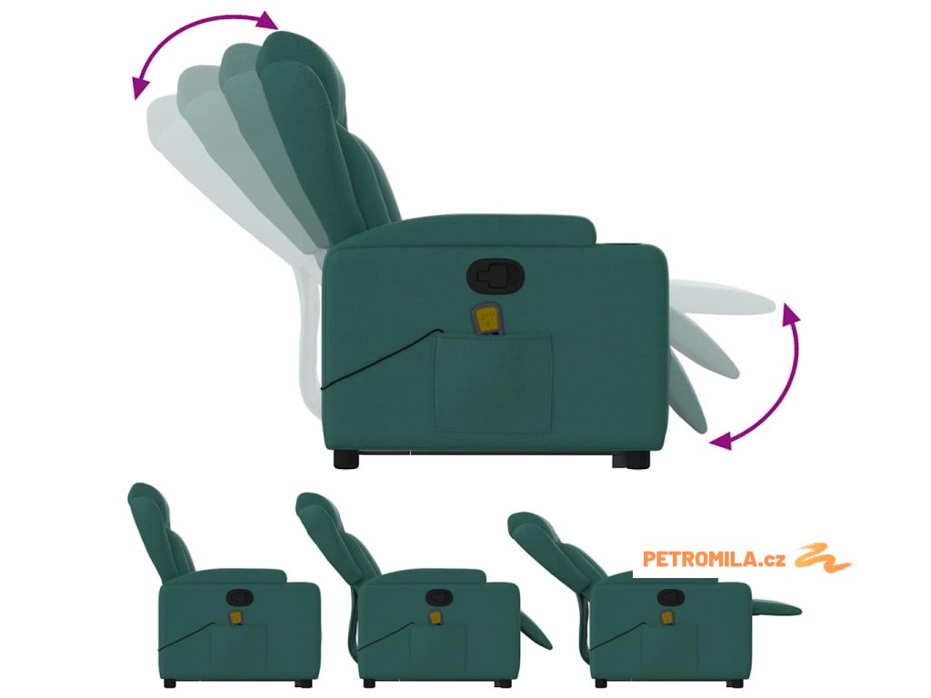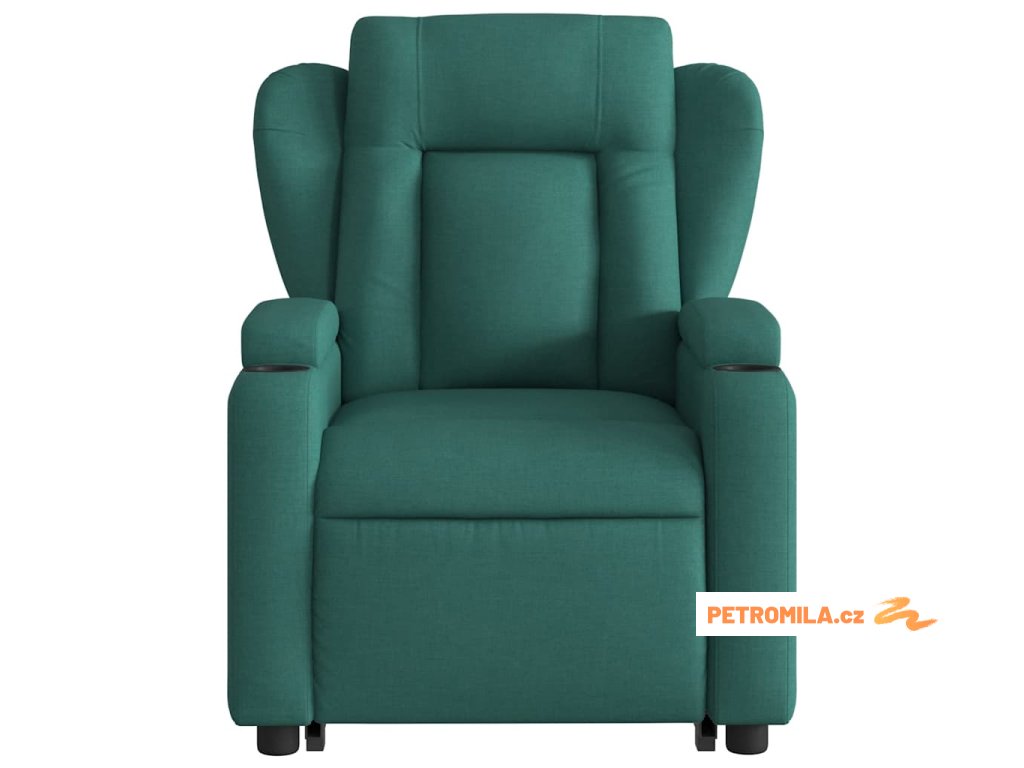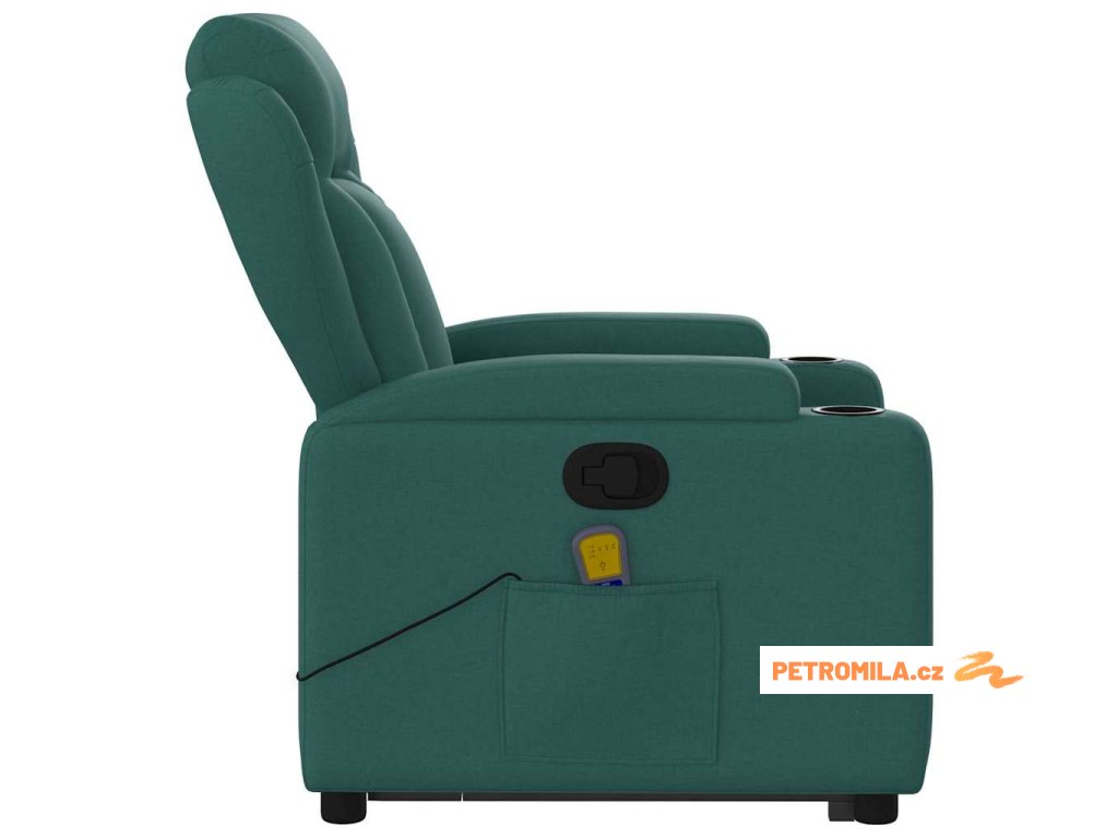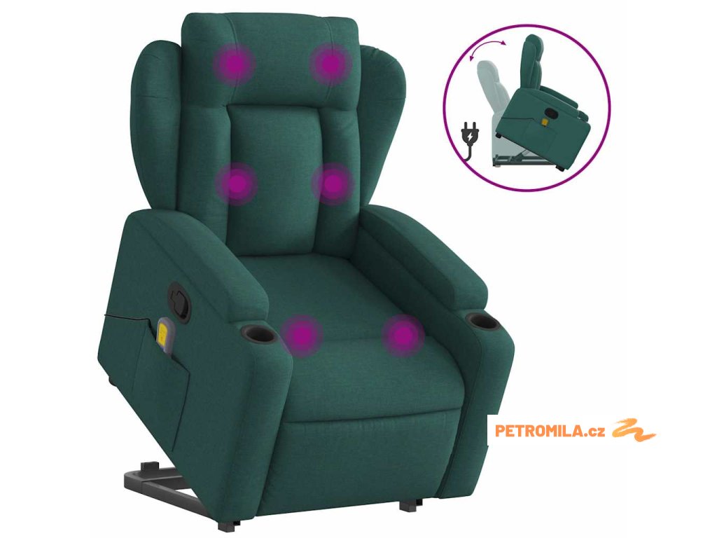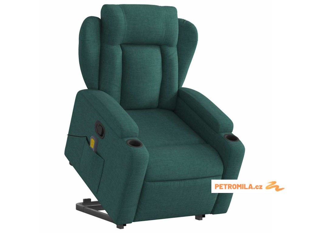 Zvedací masážní polohovací křeslo tmavě zelené textil