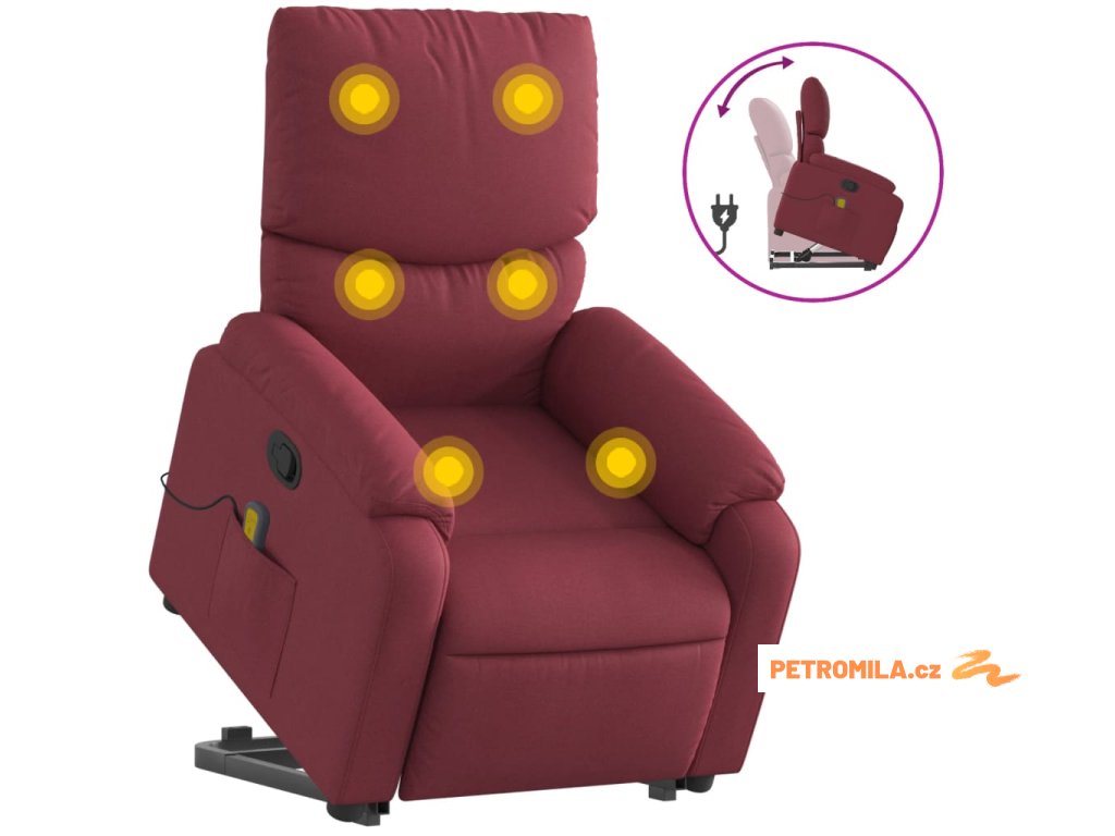 Zvedací masážní polohovací křeslo vínové textil