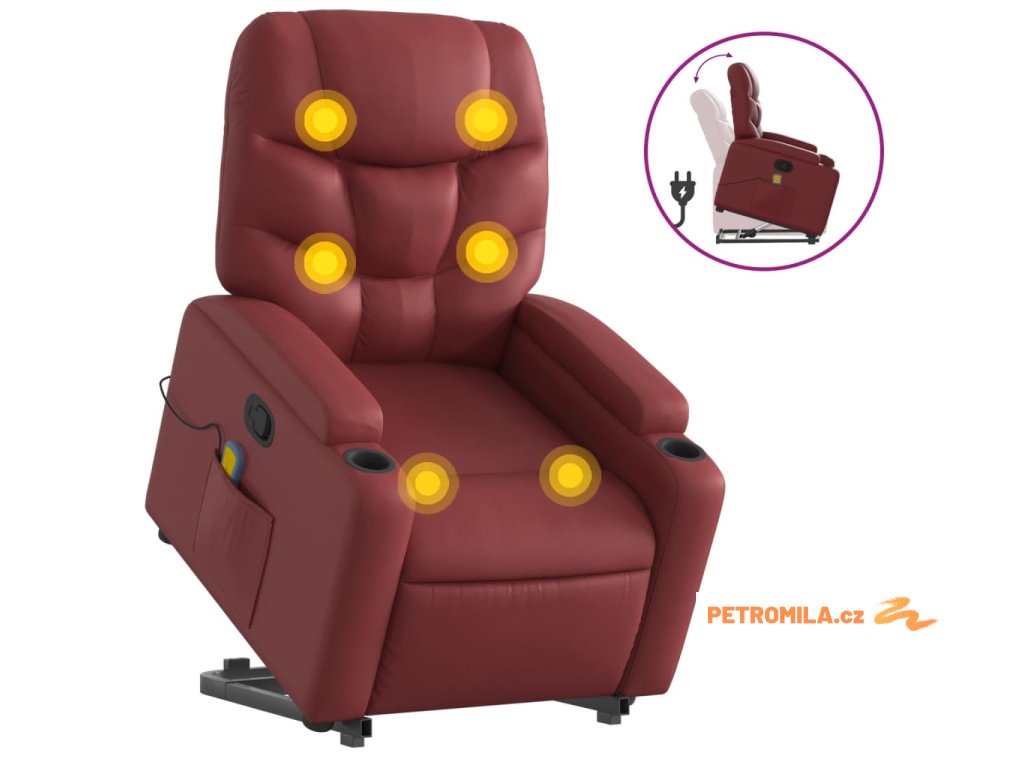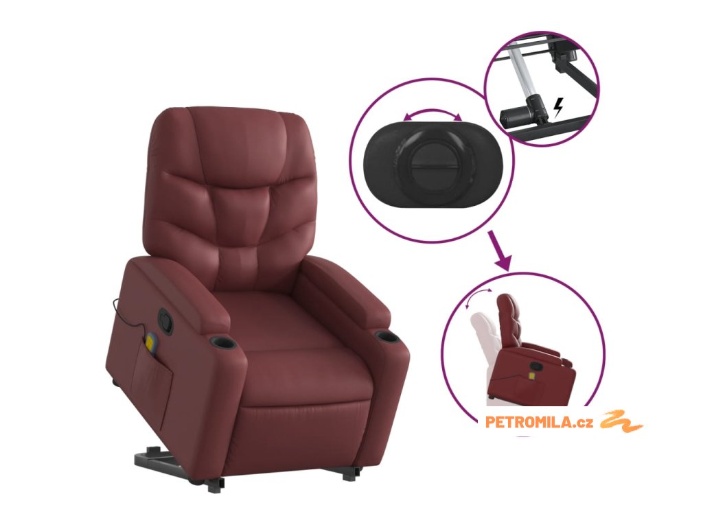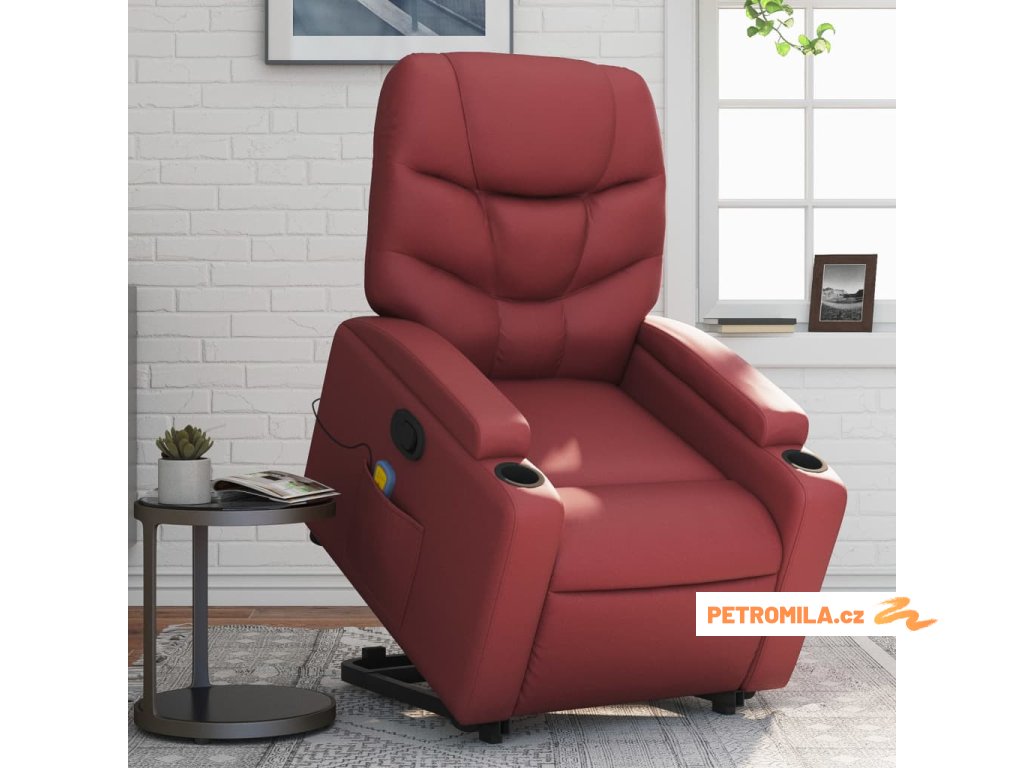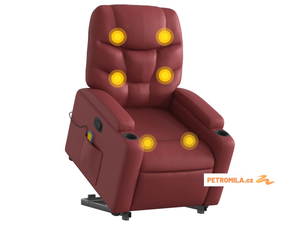 Zvedací masážní polohovací křeslo vínové umělá kůže