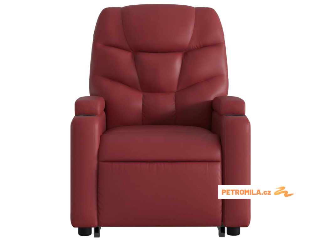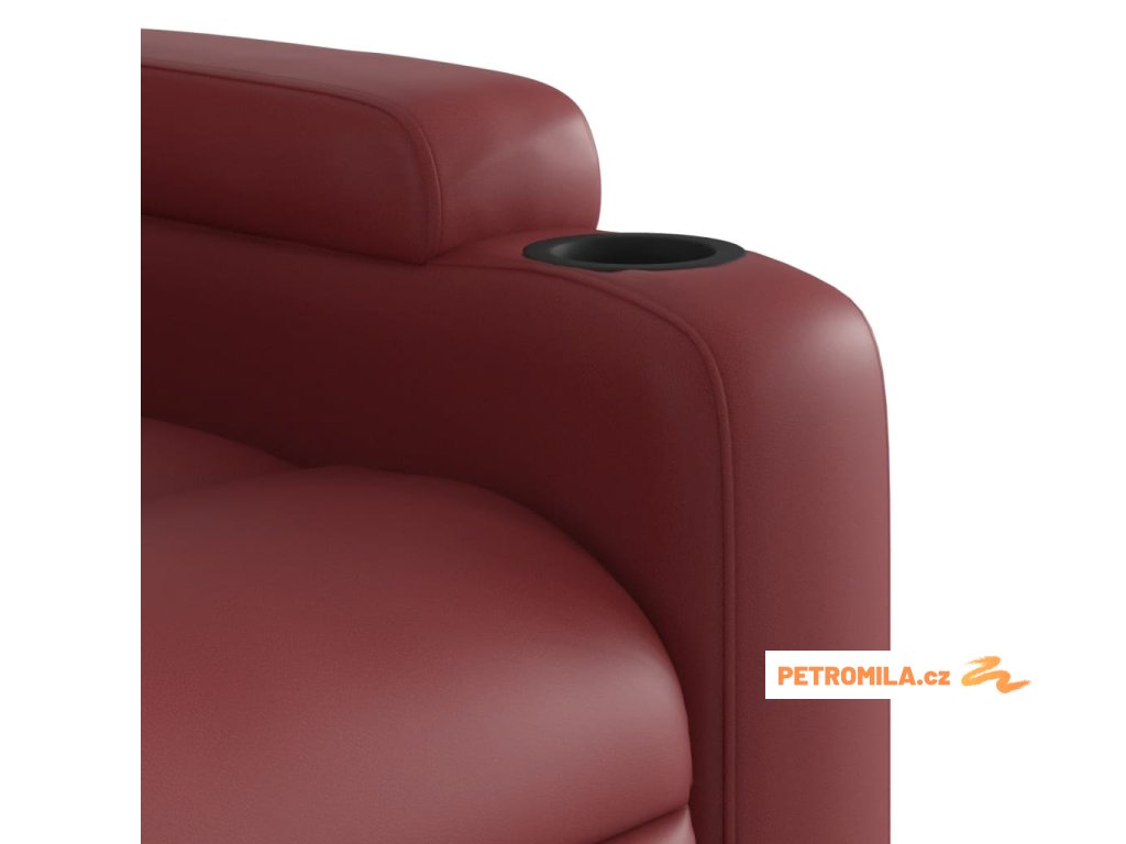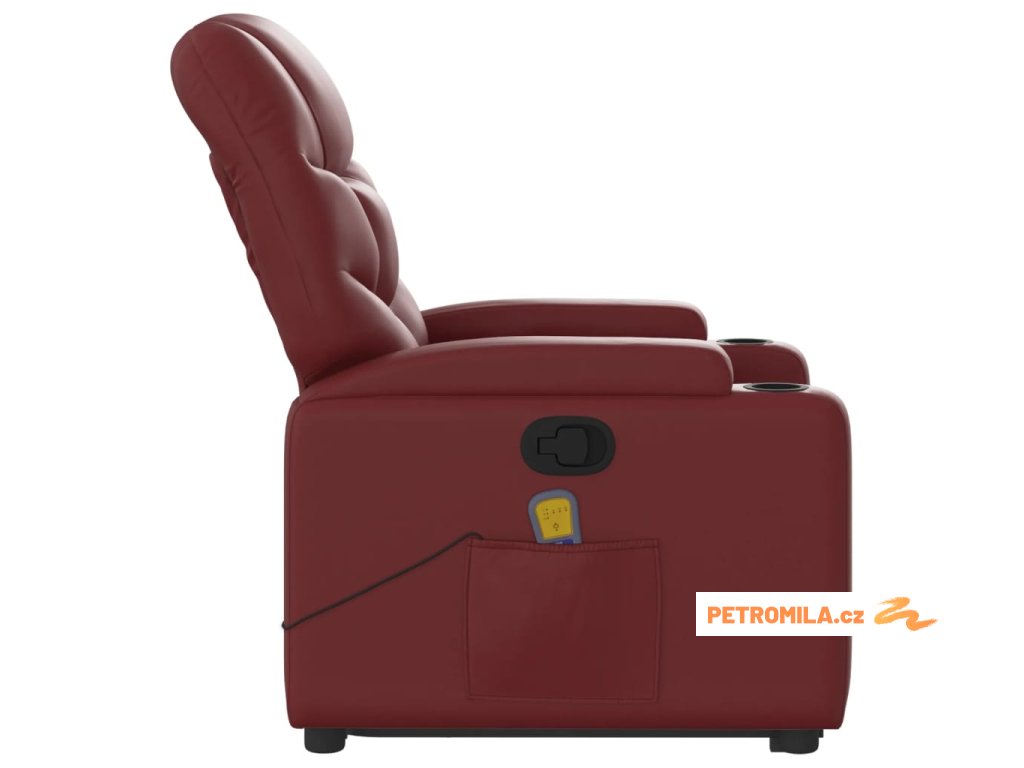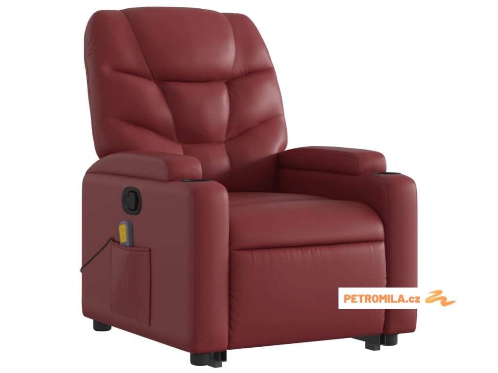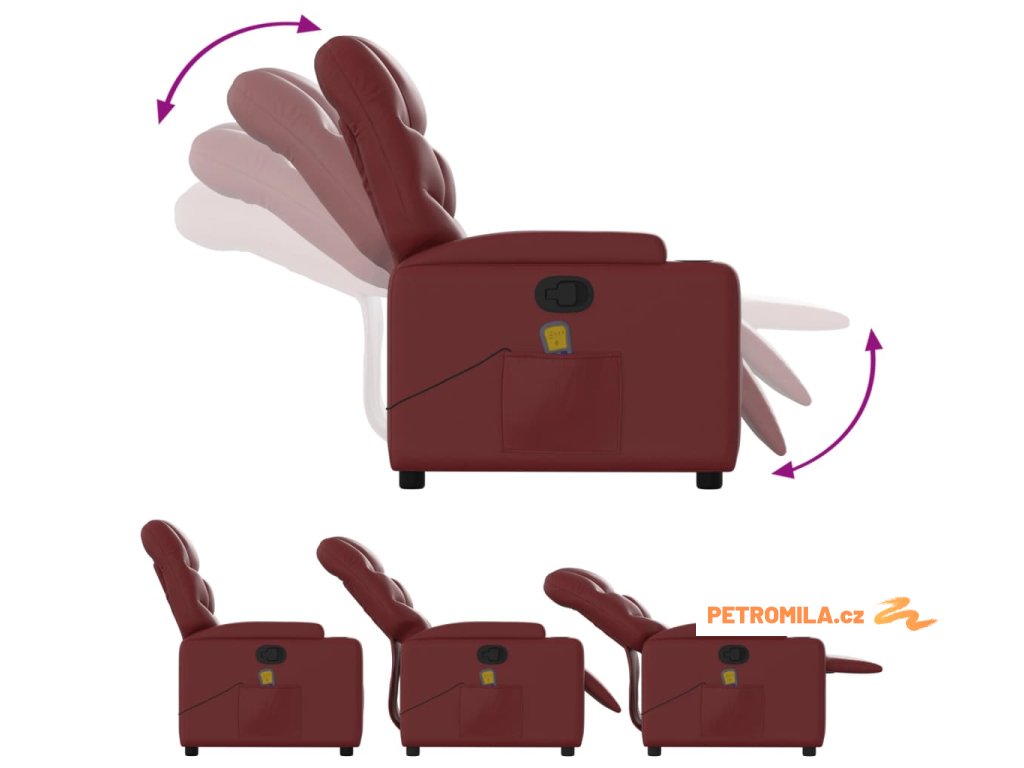 Zvedací masážní polohovací křeslo vínové umělá kůže