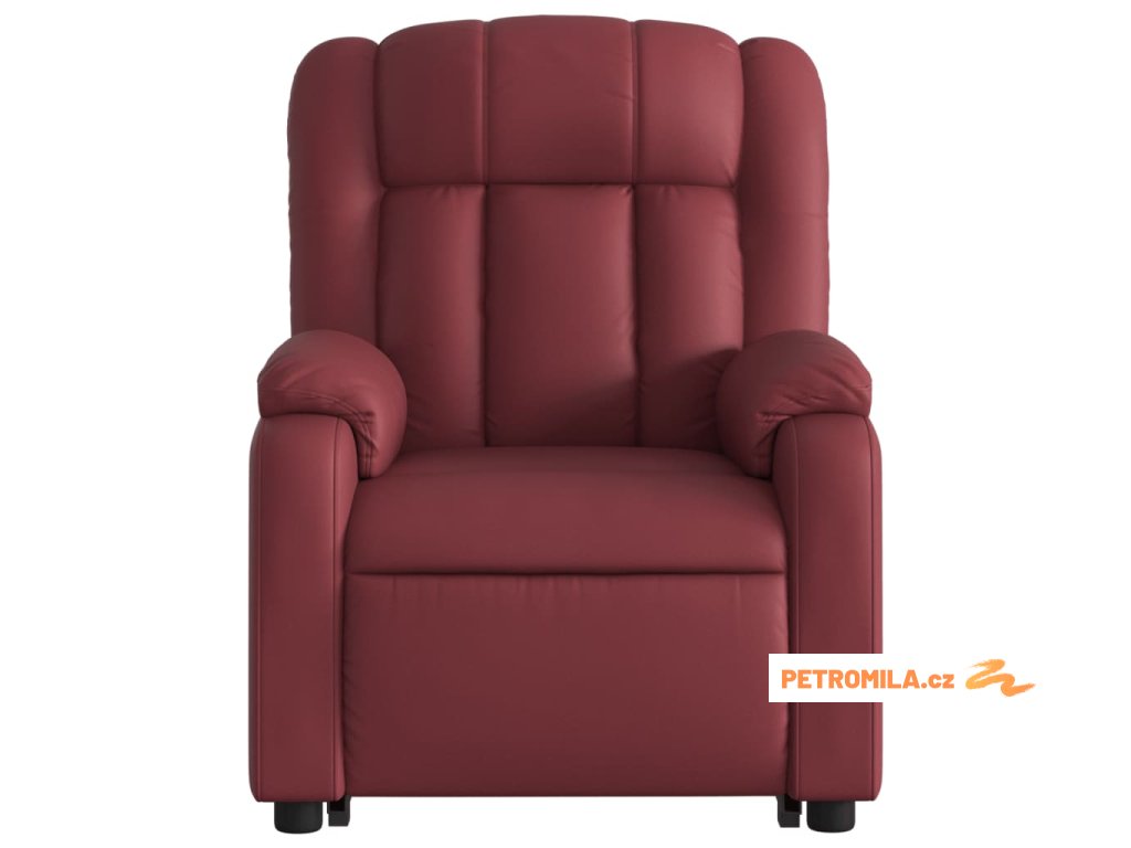Zvedací masážní polohovací křeslo vínové umělá kůže