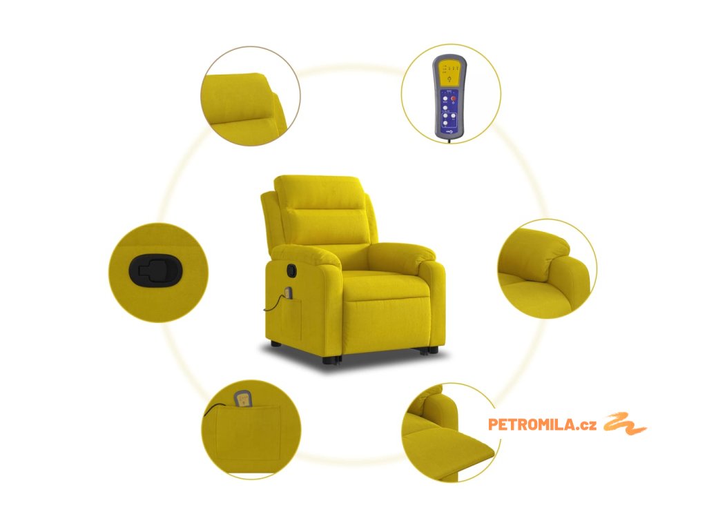 - Funkce sklápění: Toto polohovací křeslo pro seniory je vybaveno elektromotorem pro jeho zvedání. Vzhledem k funkci zvedání, která tlačí celé křeslo nahoru, můžete snadno vstát, aniž byste zatěžovali záda a kolena.