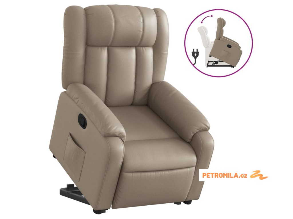 Zvedací polohovací křeslo cappuccino umělá kůže