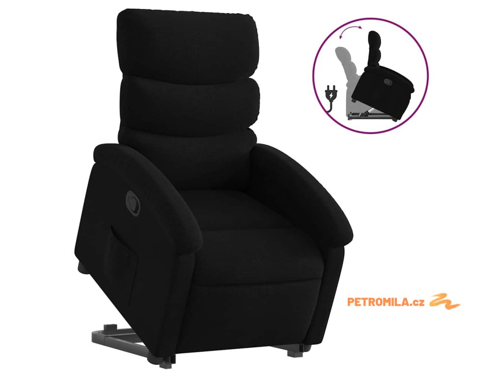 Zvedací polohovací křeslo černé textil