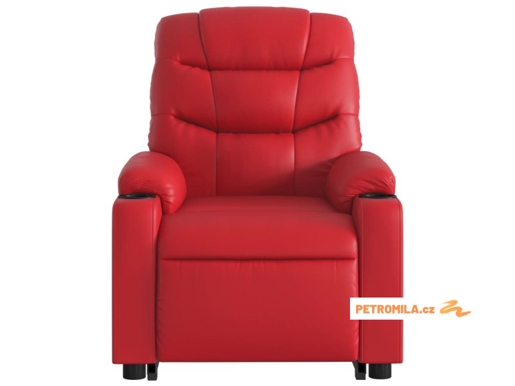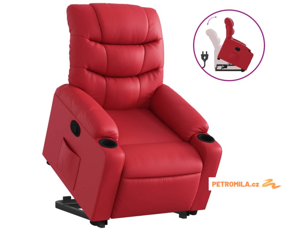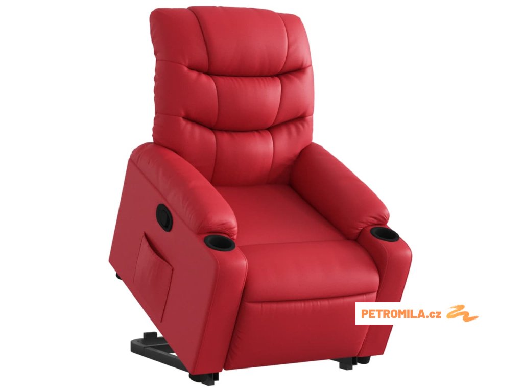 Elektrické zvedací polohovací křeslo červené umělá kůže