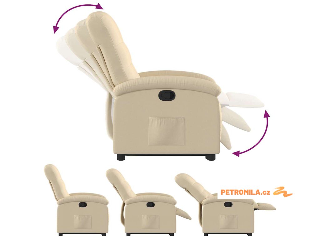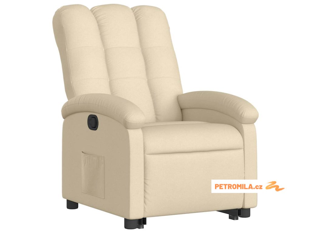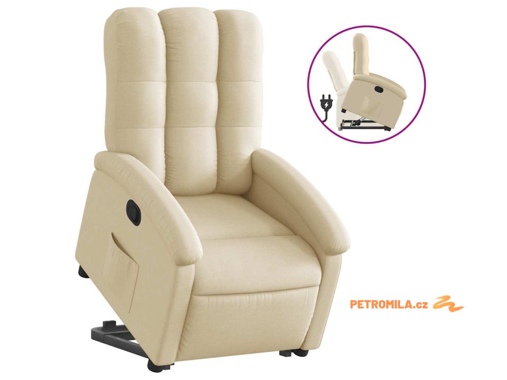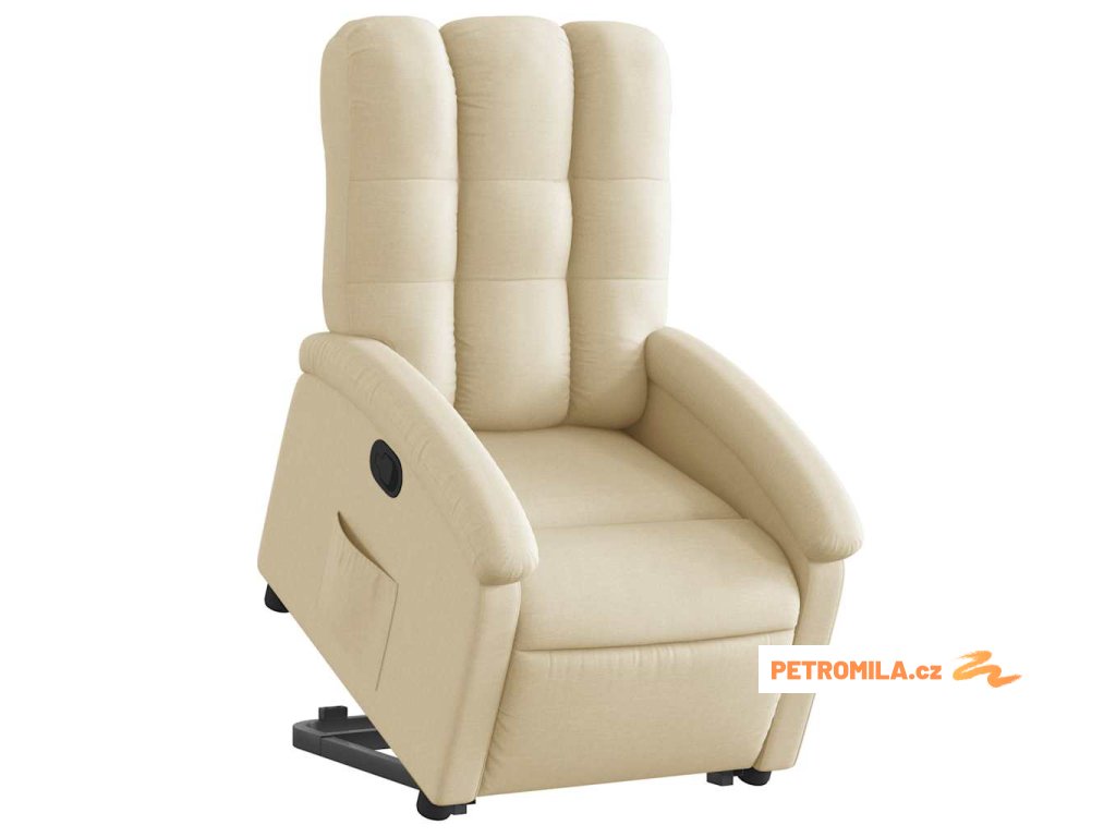 Zvedací polohovací křeslo krémové textil