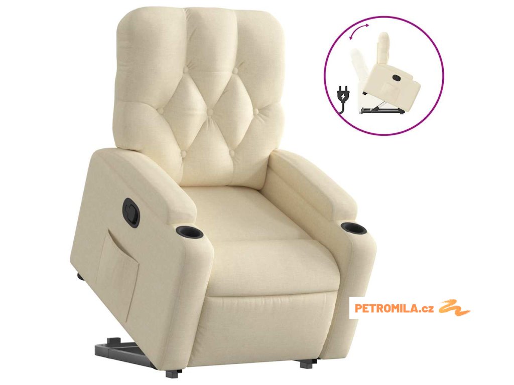 Elektrické zvedací masážní polohovací křeslo krémové textil