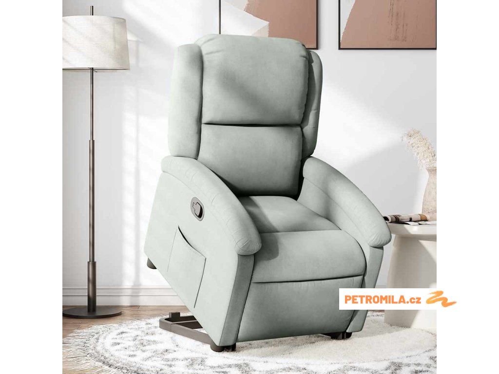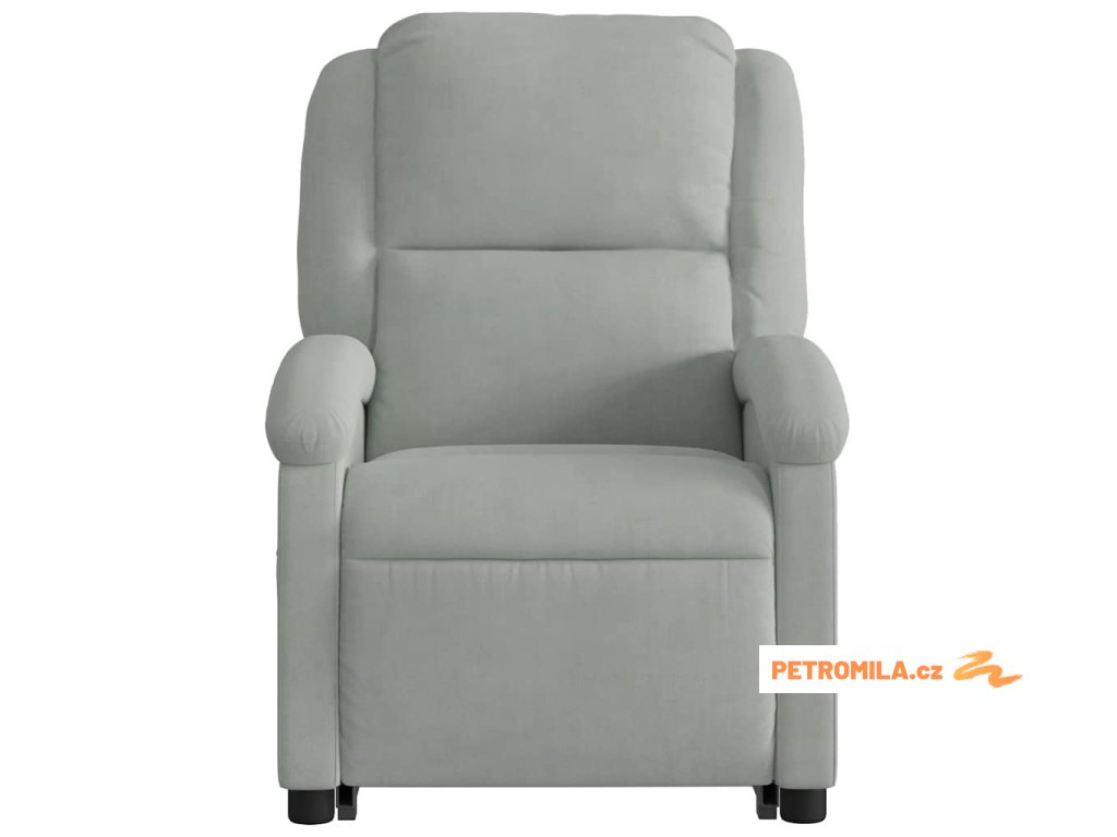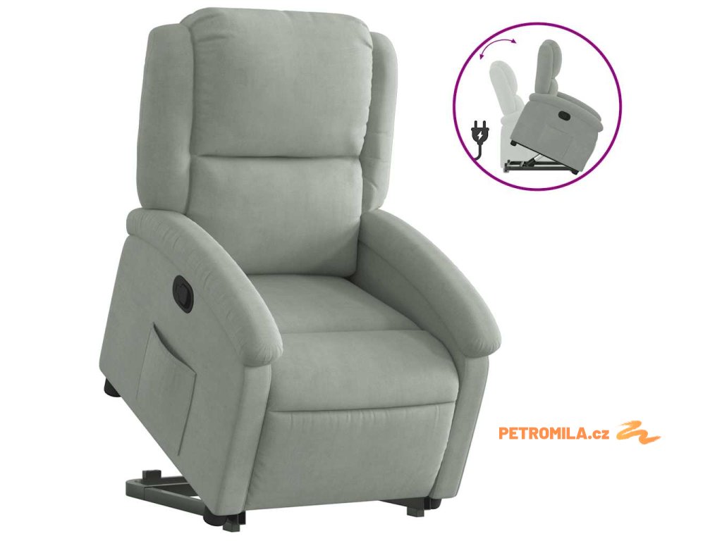 Elektrické zvedací masážní polohovací křeslo světle šedé textil