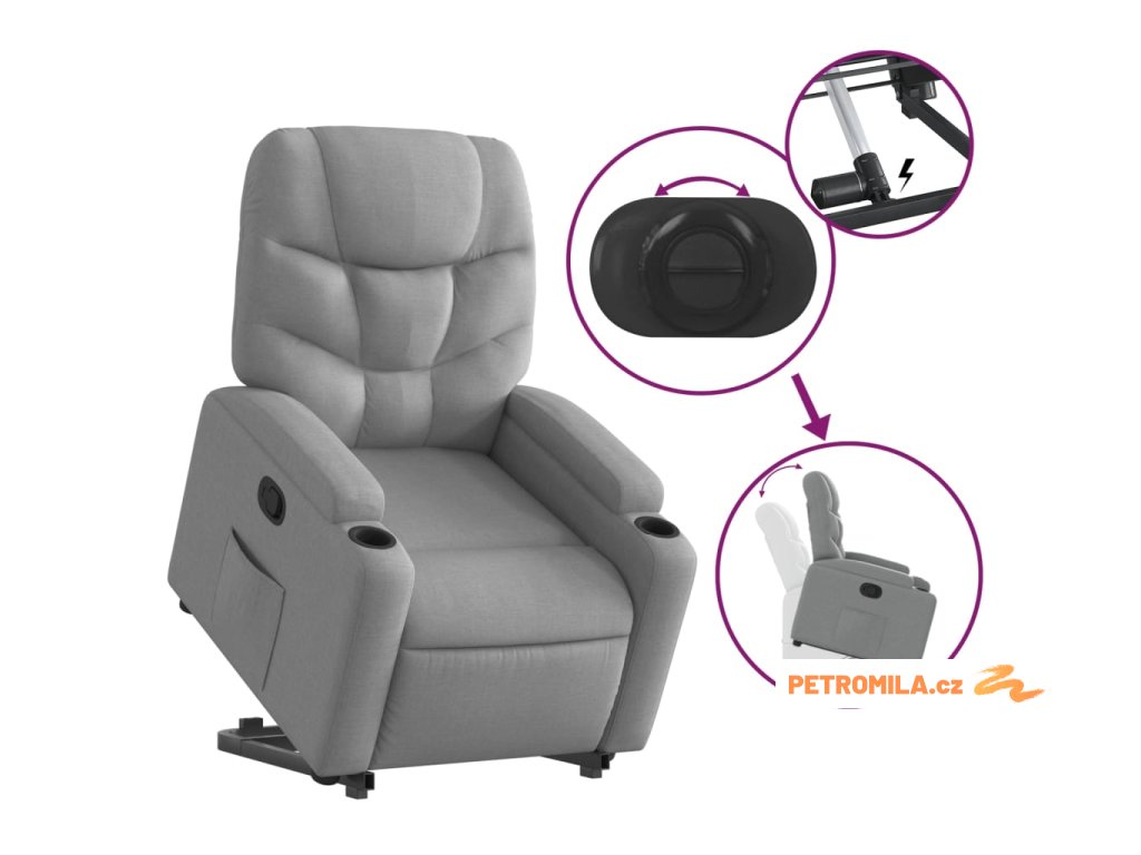 - Funkce sklápění: Toto polohovací křeslo pro seniory je vybaveno elektromotorem pro jeho zvedání. Vzhledem k funkci zvedání, která tlačí celé křeslo nahoru, můžete snadno vstát, aniž byste zatěžovali záda a kolena.