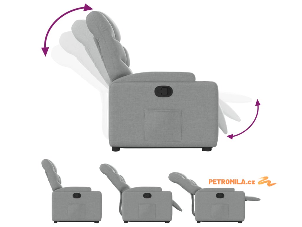 - Funkce ručního sklápění: Toto polohovací křeslo má na pravé straně páčku. Jednoduchým zatažením za páčku můžete ručně nastavit opěrku nohou a opěradlo do libovolné polohy podle svého pohodlí. Tato funkce umožňuje maximální náklon 135 stupňů. Opěradlo se navíc může snadným zatažením za páčku rychle vrátit do původní polohy.