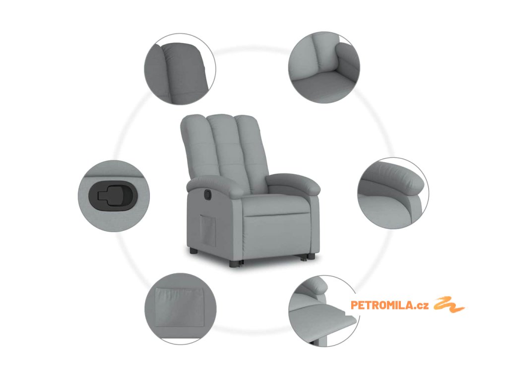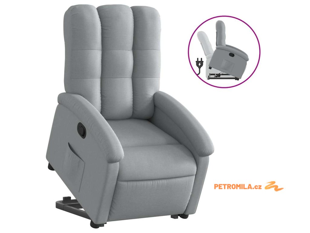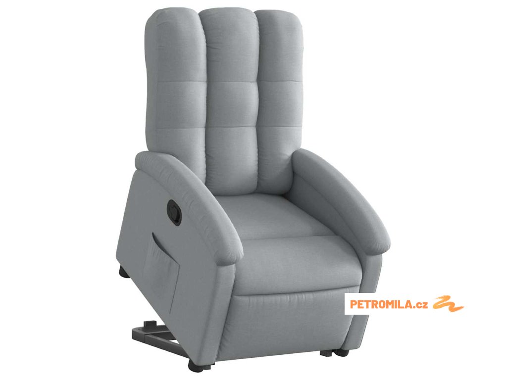 Zvedací polohovací křeslo světle šedé textil