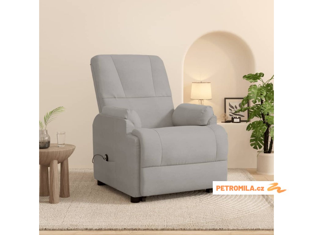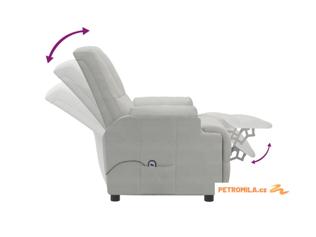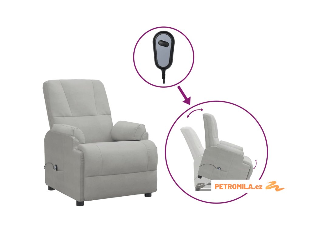 Zvedací polohovací křeslo světle šedé umělá semišová kůže