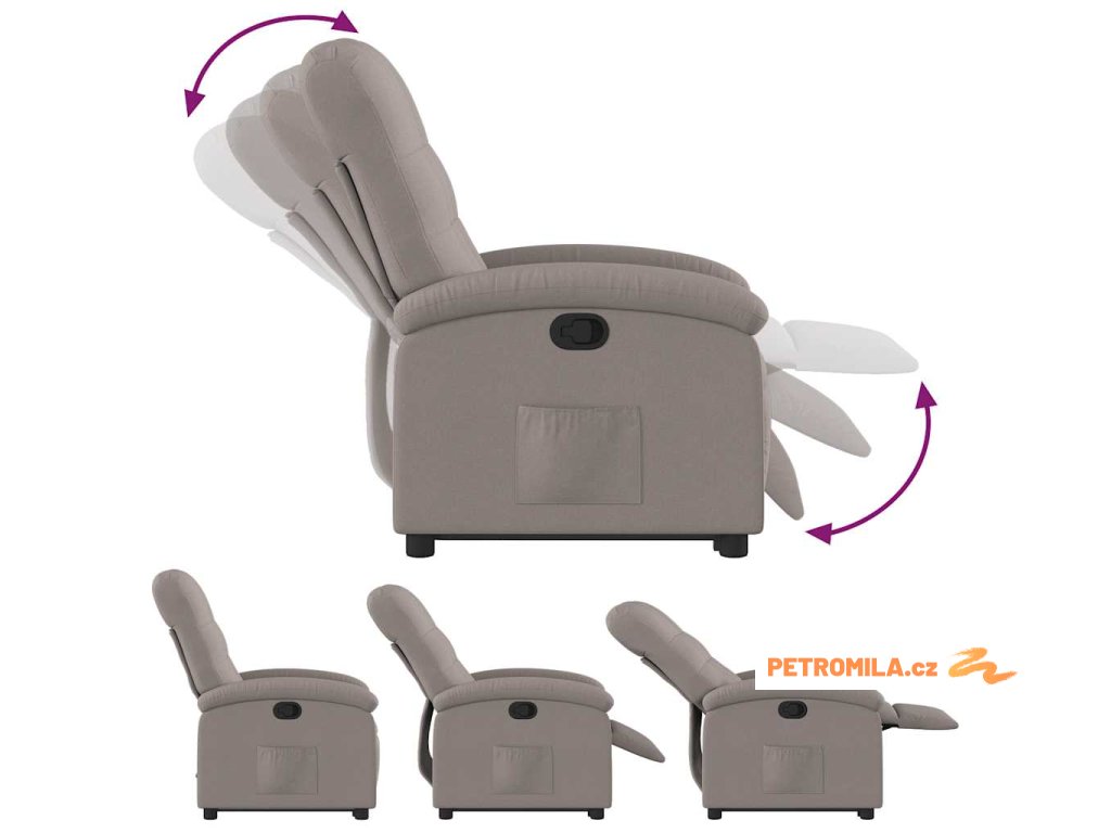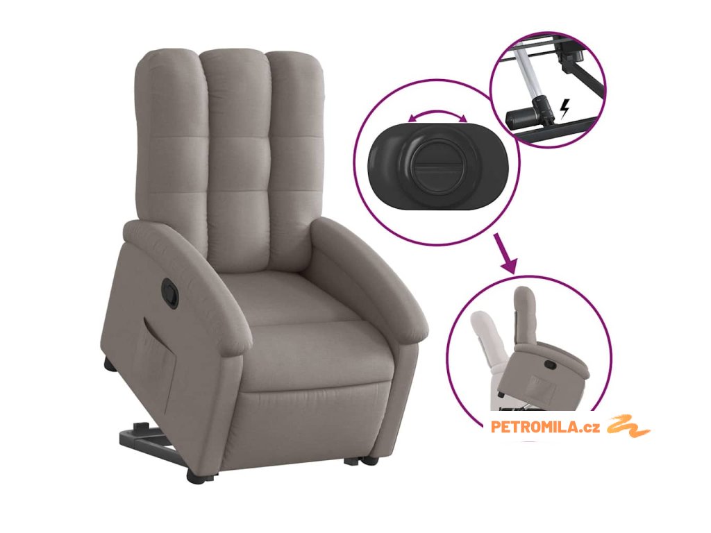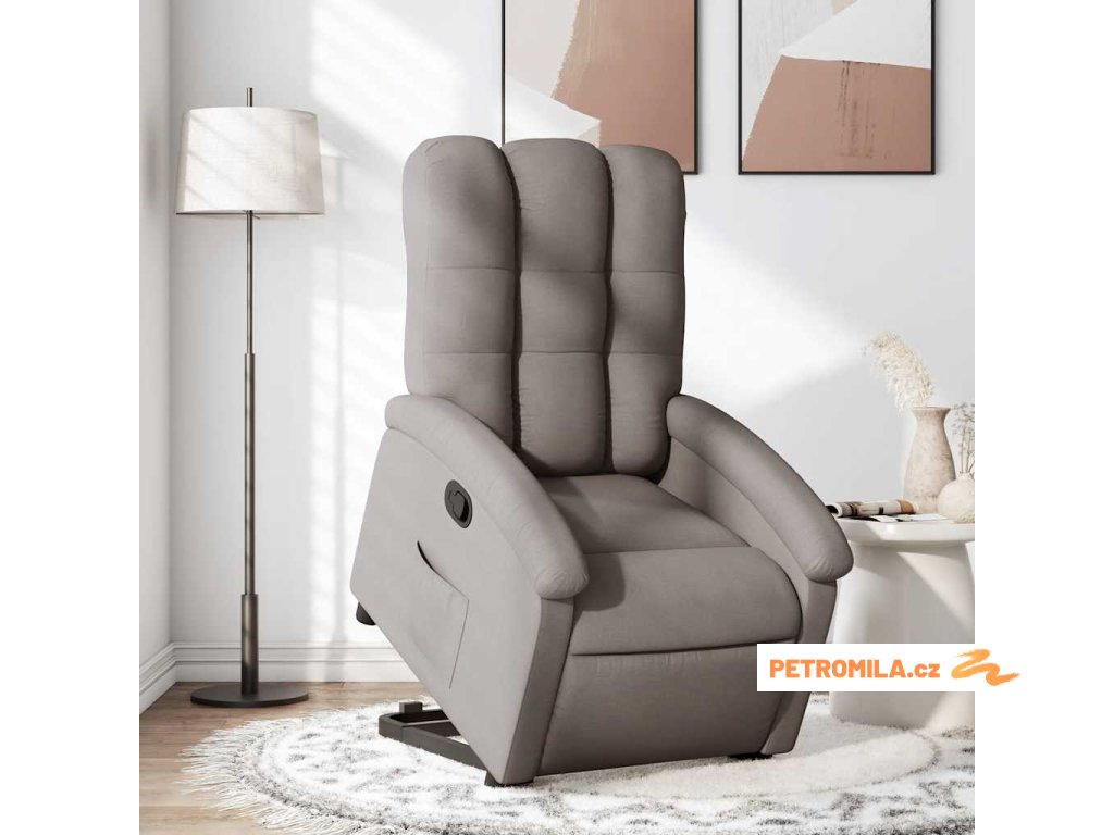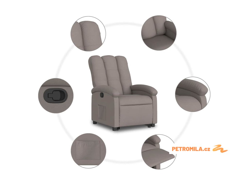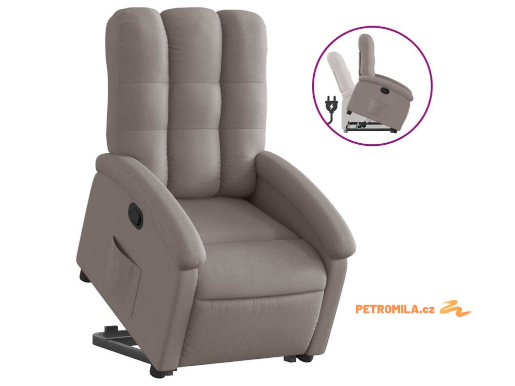Elektrické zvedací masážní polohovací křeslo tmavě šedé textil