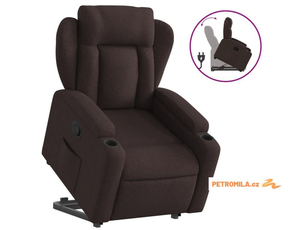 Zvedací polohovací křeslo tmavě hnědé textil