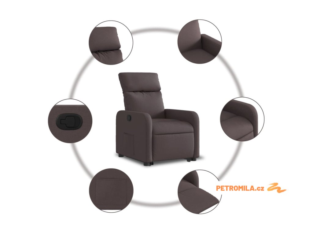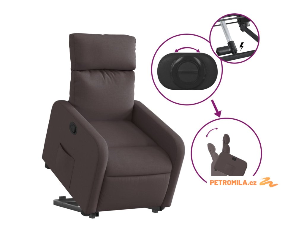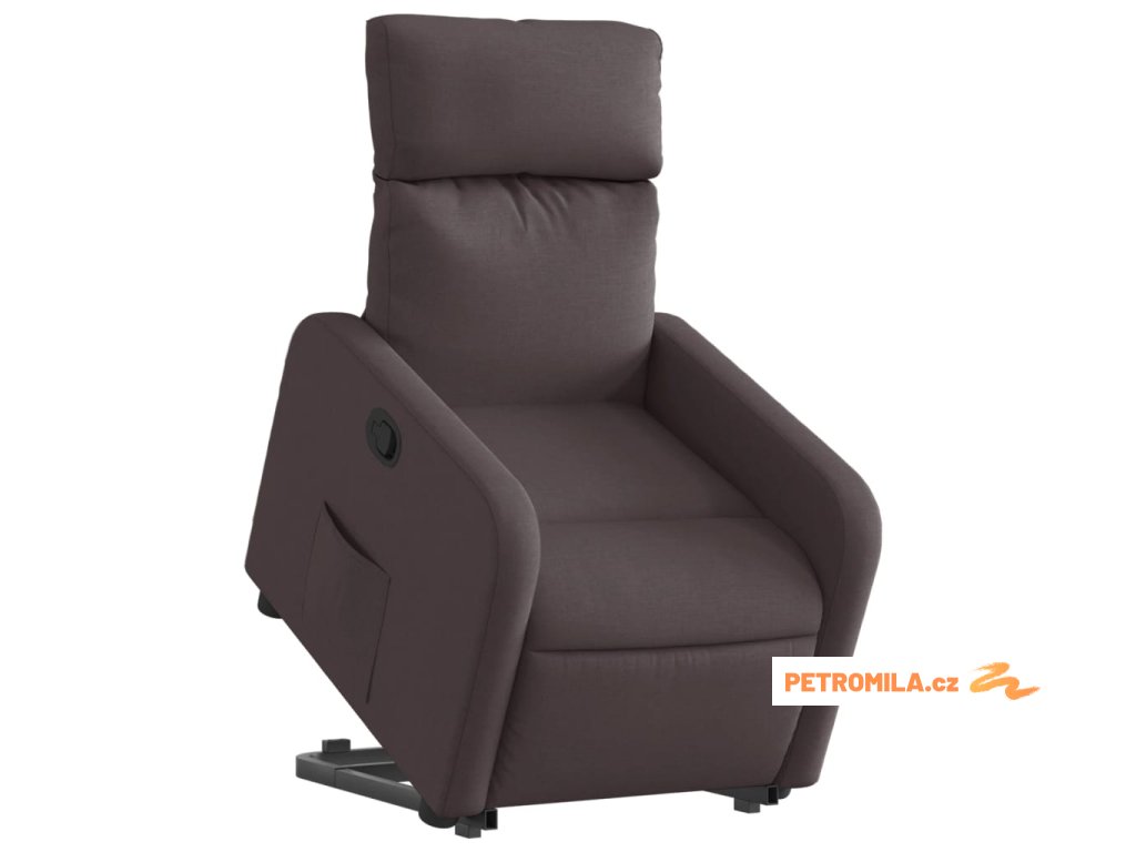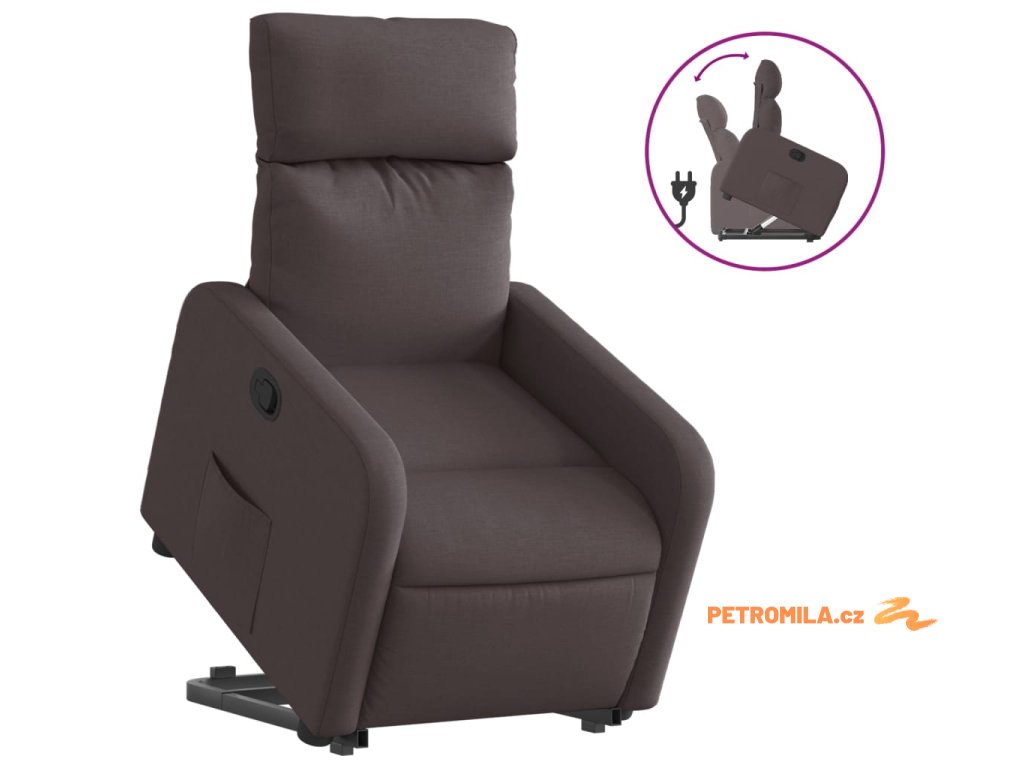 Elektrické zvedací masážní polohovací křeslo tmavě šedé textil