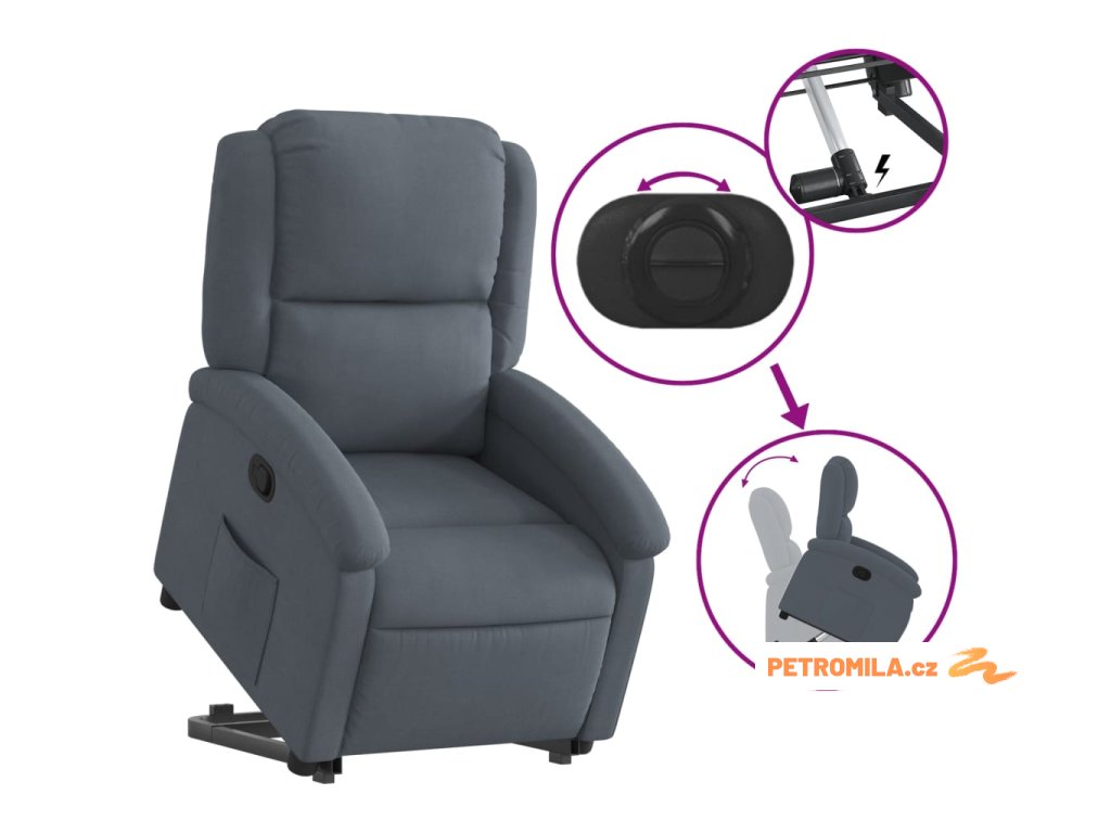- Funkce sklápění: Toto polohovací křeslo pro seniory je vybaveno elektromotorem pro jeho zvedání. Vzhledem k funkci zvedání, která tlačí celé křeslo nahoru, můžete snadno vstát, aniž byste zatěžovali záda a kolena.
