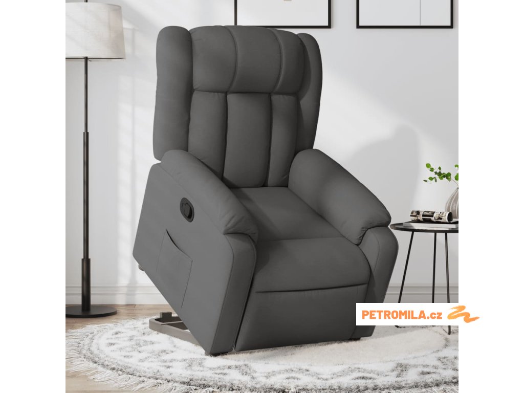 Zvedací polohovací křeslo tmavě šedé textil